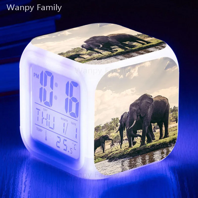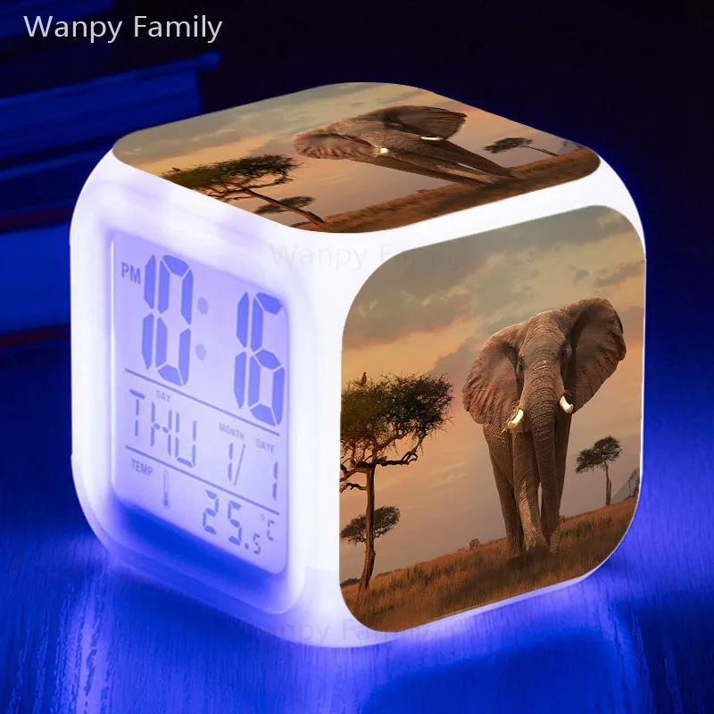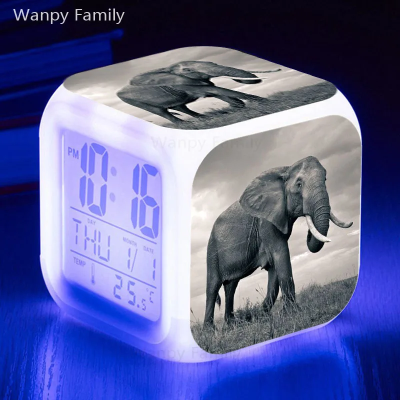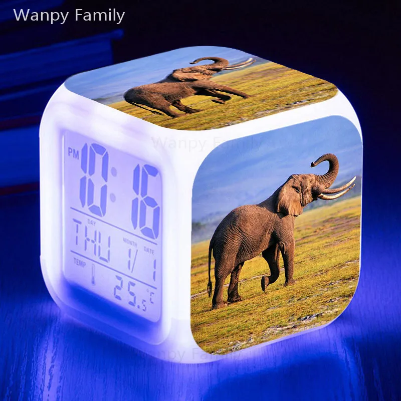 Слон Будильник 7 цветов Светящиеся сенсорный зондирования детский будильник подарок Multifunctio флэш-цифровой часы