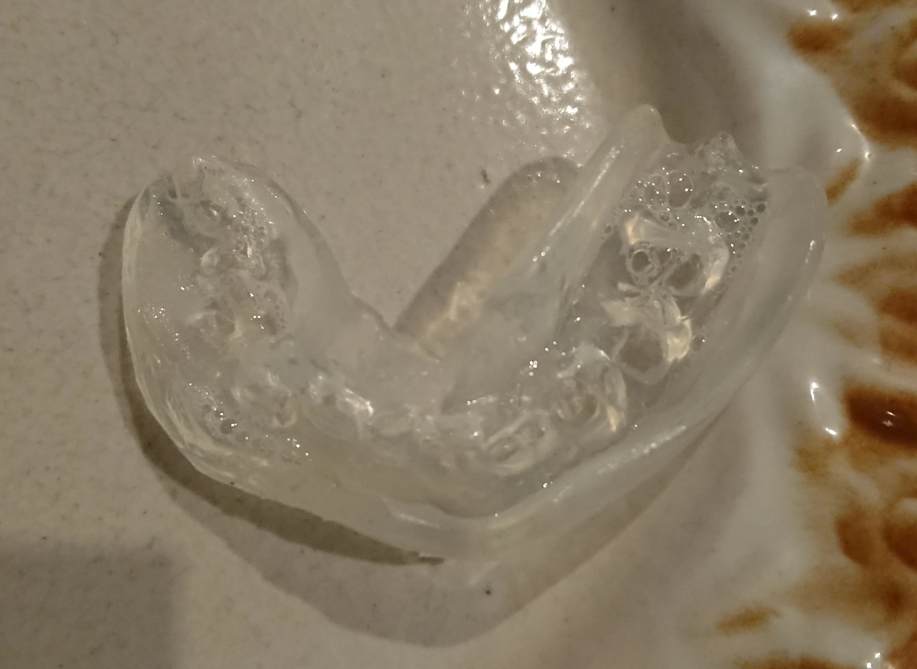 Капа из хорошего плотного силикона. Я использую одну на нижнюю челюсть на ночь от бруксизма. Все устраивает.