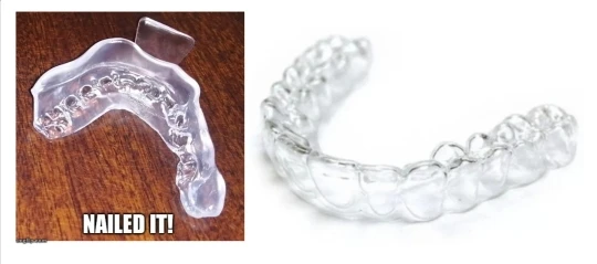 Пойдёт штука. Рассматривал как один из вариантов защиты зубов при бруксизме. Помогает. На зубах держится. Само собой надо придать форму, предварительно опустив в кипяток (для этого и лепесток присутствует).