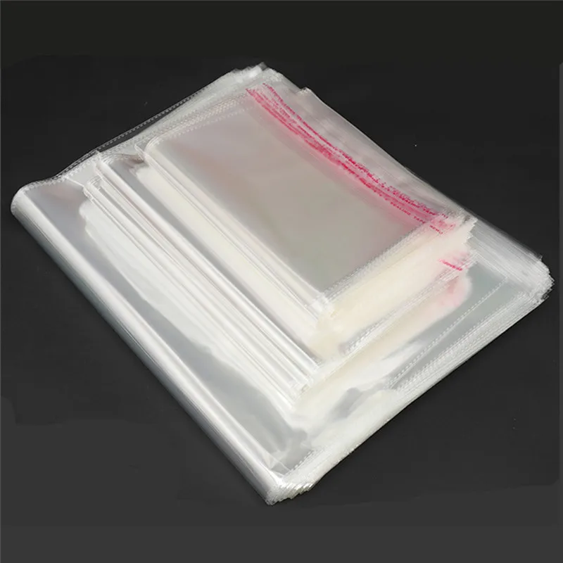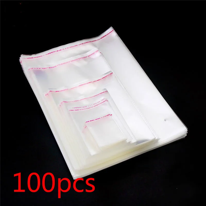 100 шт.компл. прозрачные самоклеящиеся Упаковочные пакеты OPP, пластиковые целлофановые пакеты, подарочные мешочки для конфет, мешочки для упаковки ювелирных изделий