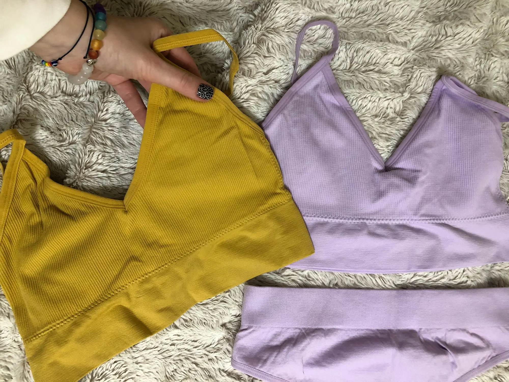 Доставка до спб заняла около 3 недель. Качество неплохое: нитки не торчат, ткань мягкая, приятная (вкладыши выкинула, с ними неудобно), цвета на фото переданы точно. Лямки узковаты и достаточно сильно скручиваются, что не критично, но дискомфорт доставляет. В целом, рекомендую, однако для активностей точно не подойдёт