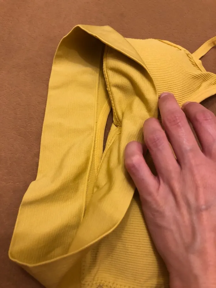 Отличный топ, хорошо держит грудь, без дефектов, размер груди 2,5, сел прекрасно. Не давит. Не болтается. Под грудью у меня 70 см, сама грудь 88, узкая грудная клетка