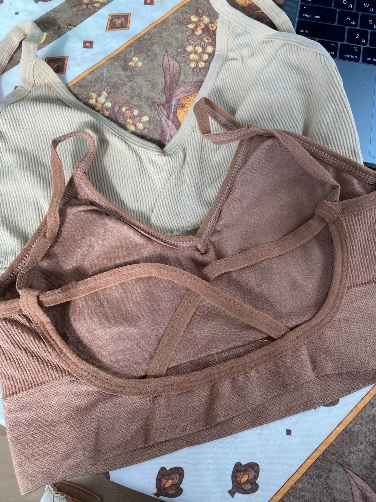 Топ отличный, все швы идеальные, очень удобный! Я ношу размер xs, все подошло идеально! Закажу ещё один)) брала синий, все как на фото, чашки можно вытащить))