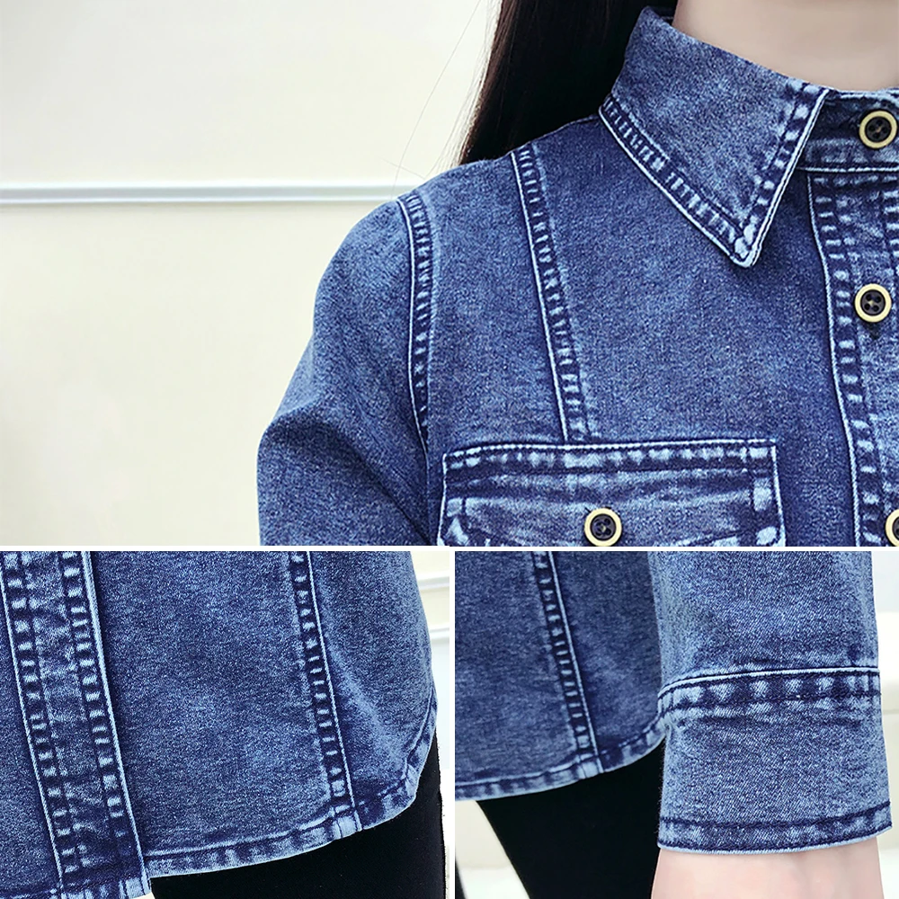 Рубашка джинсовая женская с длинным рукавом, топ в винтажном стиле, стрейчевая Повседневная хлопковая блузка, осень 2019