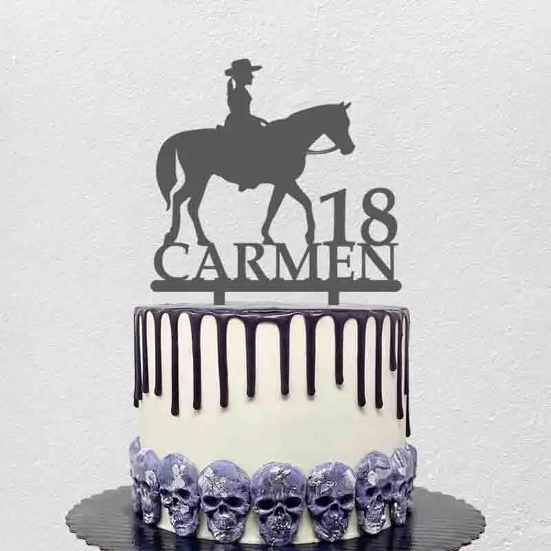 Персонализированный Топпер для торта на день рождения с именем на заказ, лошадка для верховой езды для девочек, украшение для торта на день рождения