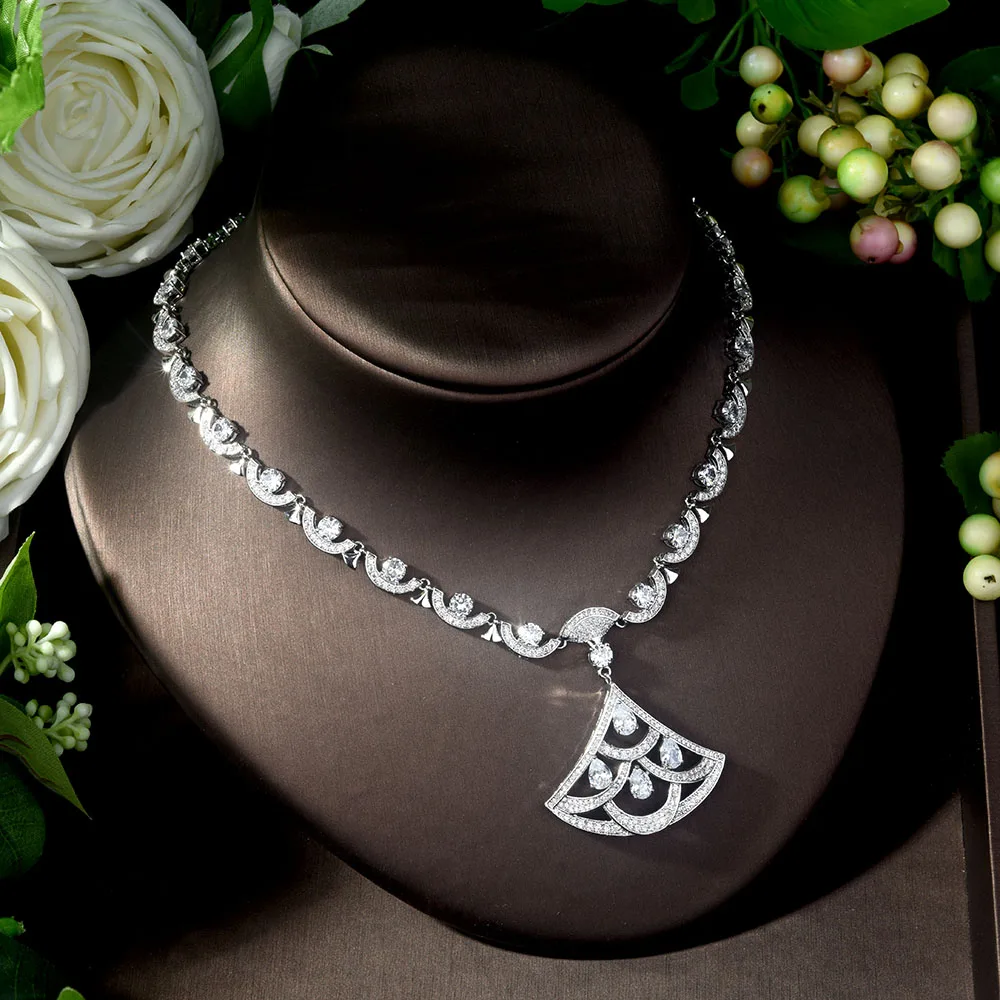HIBRIDE Роскошный прозрачный кристалл циркония серьги и ожерелье на...