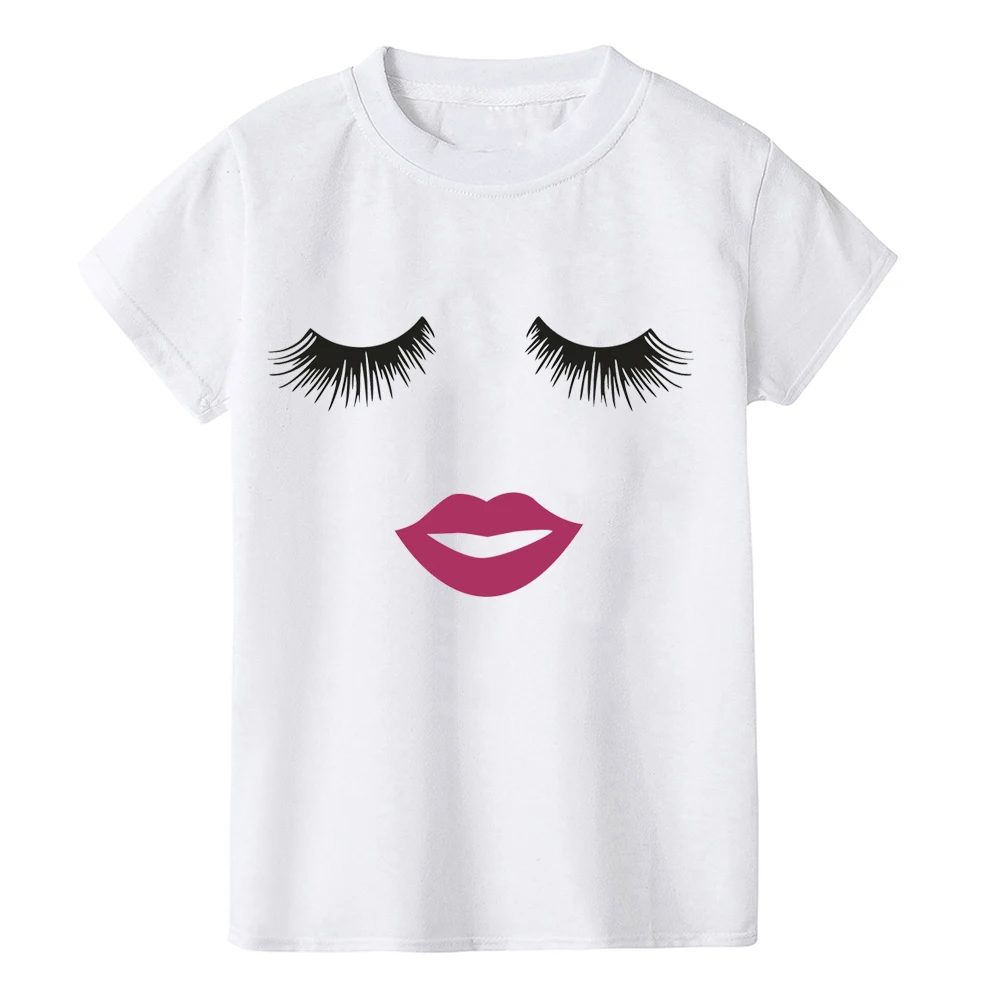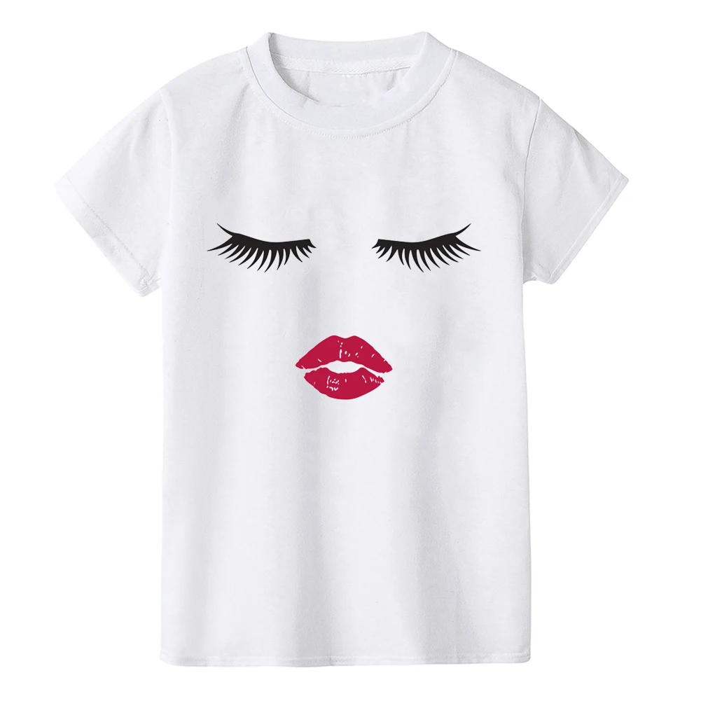 Летняя новая белая футболка для маленьких девочек, одежда для младенцев, футболка для девочек с милым принтом глаз, топы для девочек, футболка для малышей, Детская футболка, наряды