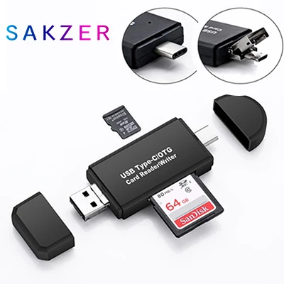 Высокоскоростное устройство для чтения карт OTG Type C micro USB USB 3 в 1 USB2.0 универсальное OTG TFSD для Android, удлинительные заголовки для компьютера