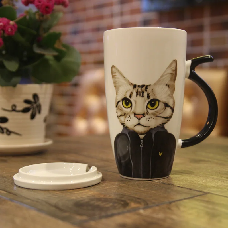 600 мл кошка Керамика Кофе кружка с крышкой большая Ёмкость кружки с животными, жилет с мультипликационным принтом молоко Кофе Чай фарфоровая чашка кружка Новинка подарки