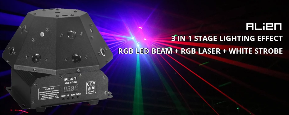 Лазерный проектор ALIEN 3 в 1, RGB-проектор + светодиодный луч RGB + белый стробоскоп, дискотека, вечеринка, танцы, вращасветильник
