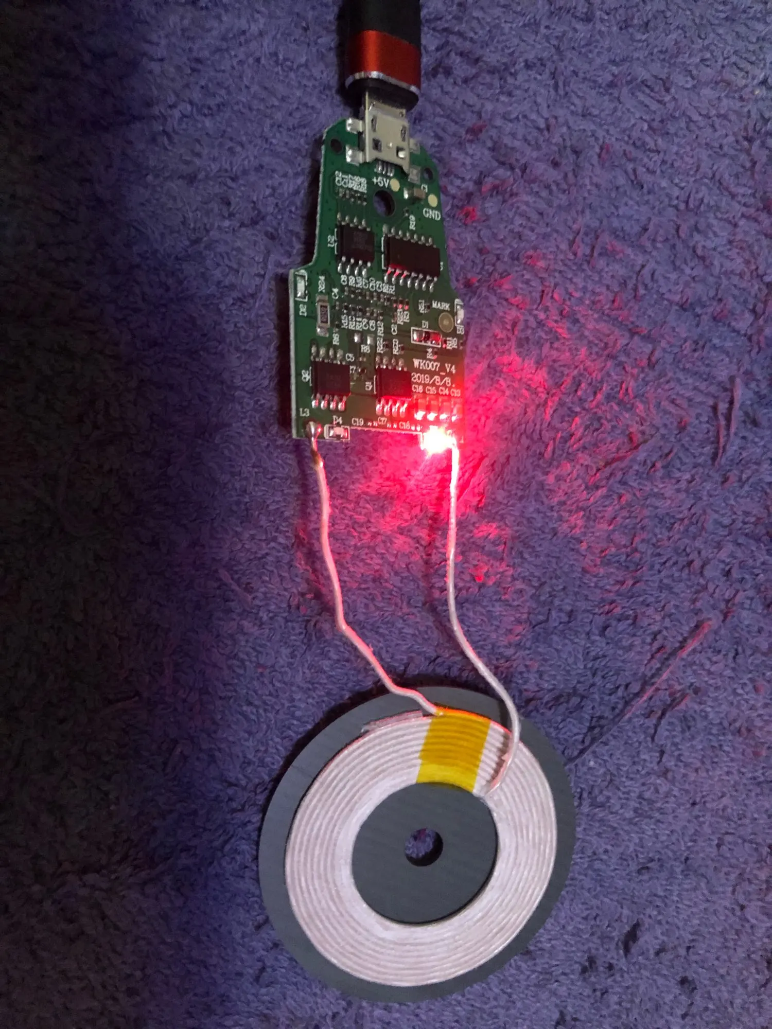 работает. без быстрои зарядки. хочу встроить в панель автомобилЯ. есть световои индикатор. горит красная лампочка. при зарядке 3 синих включаются вместо красной