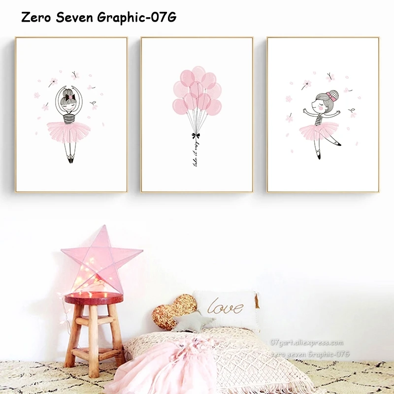 Милая балерина девочка розовый воздушный шар Картина на холсте постер и печать настенное Искусство украшение для комнаты девочки домашний декор