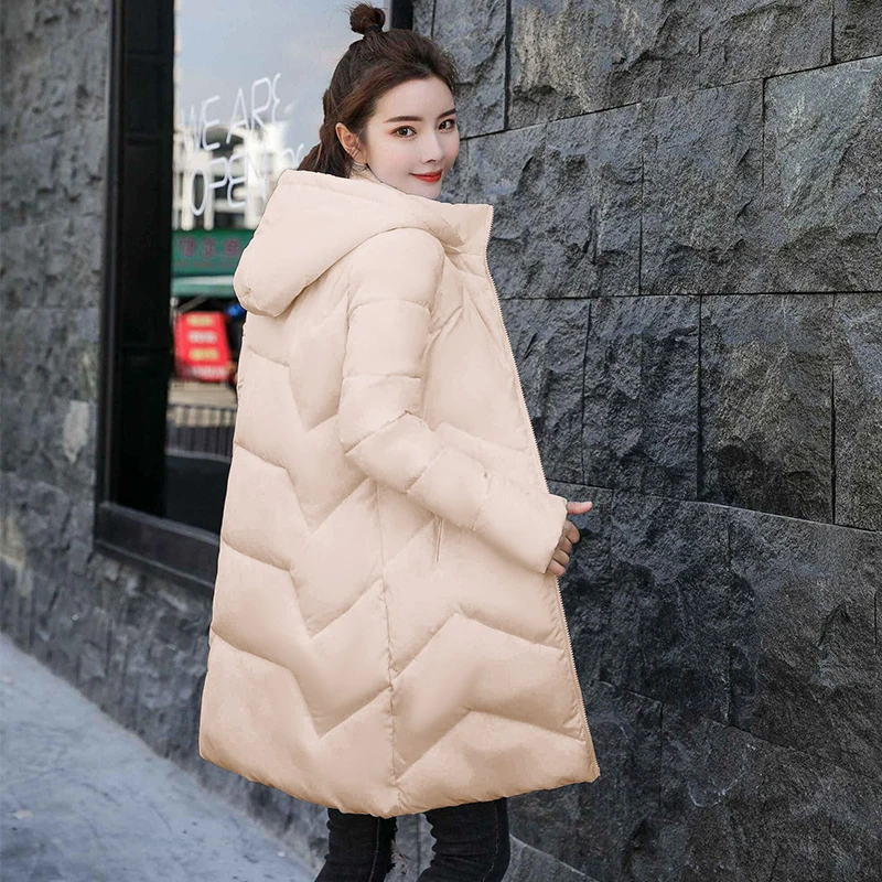 Женский пуховик с капюшоном, Повседневная теплая парка с длинным ру...