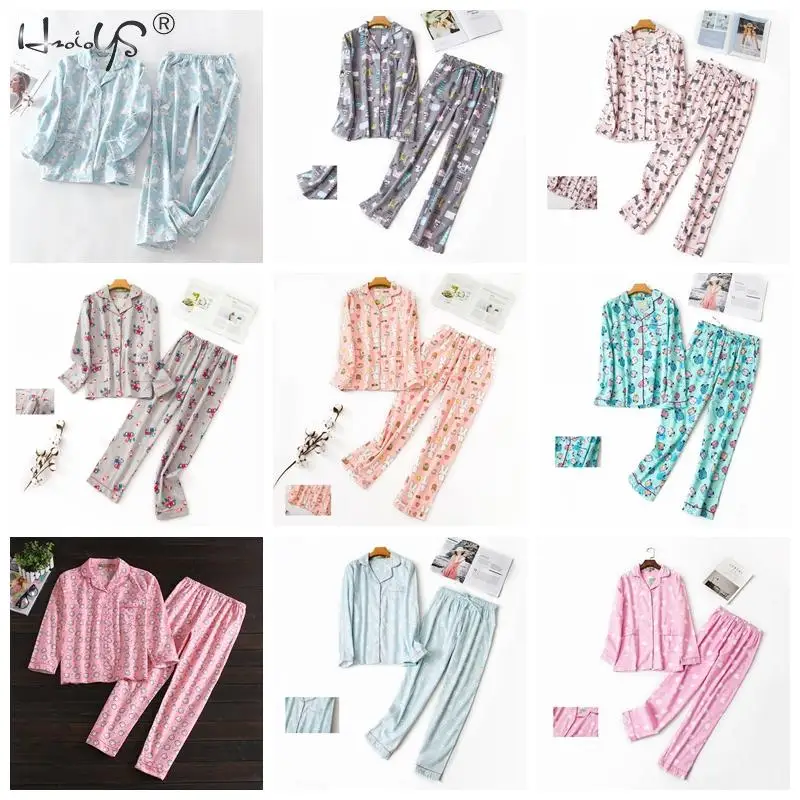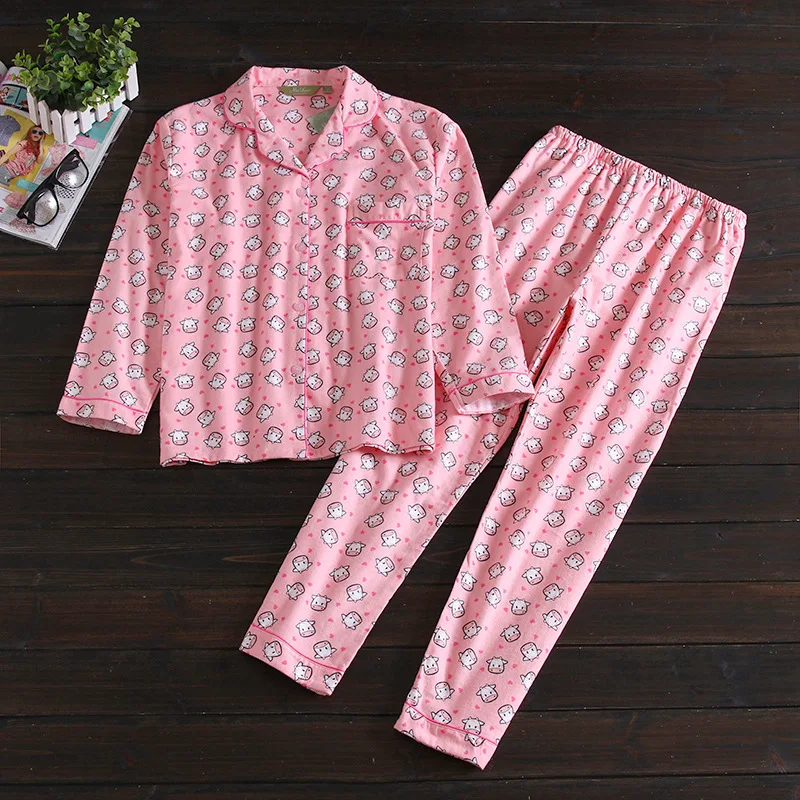 Осенне-зимние пижамные комплекты с длинным рукавом Женская хлопковая мультяшная Пижама Милая Пижама с котом Женский Повседневный домашний комплект из 2 предметов