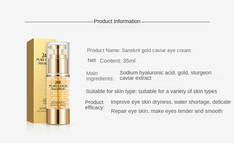 24K Сыворотка для глаз с золотой кислотой 35 мл против морщин для устранения темных кругов Икра эссенция для глаз антивозрастной омолаживающий мгновенный отечность капель D