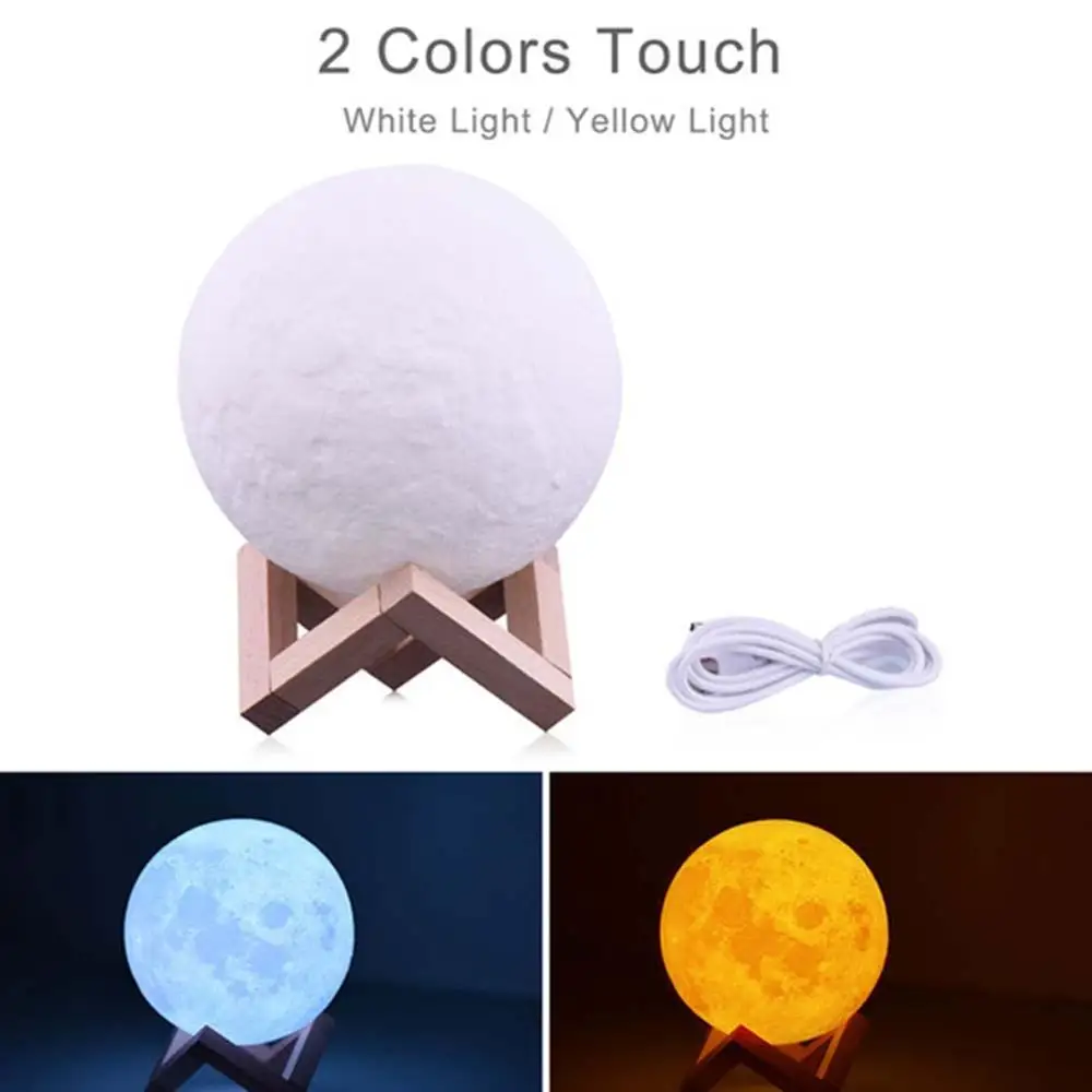 Перезаряжаемая лампа в форме Луны, 2 цвета, 3D светильник ный выклю...