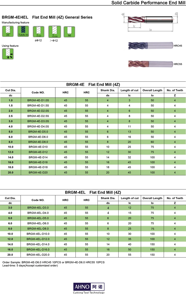 AHNO сверхдлинные насадки из карбида вольфрама квадратные фрезерные инструменты с ЧПУ HRC55 AlCr на основе медного покрытия 4 лезвия сверла с ЧПУ Заводские розетки