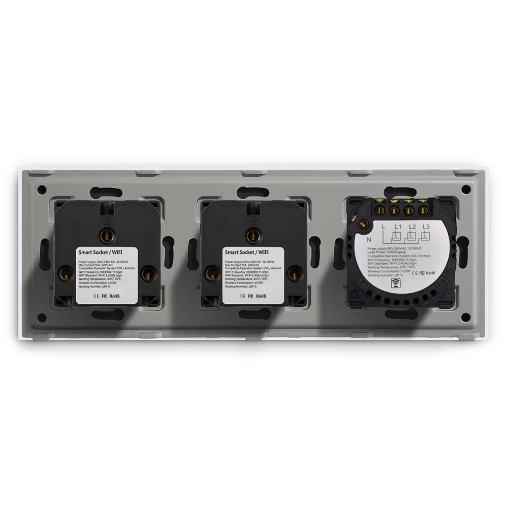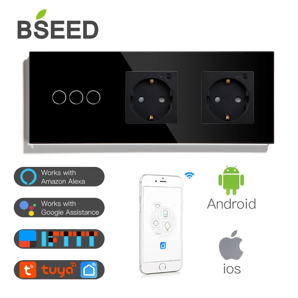 Евророзетка BSEED с двумя евророзетками и Wi-Fi, переключатель на 3 клавиши с белой, черной прозрачной панелью управления из хрустального стекла, от Alexa Google Tuya