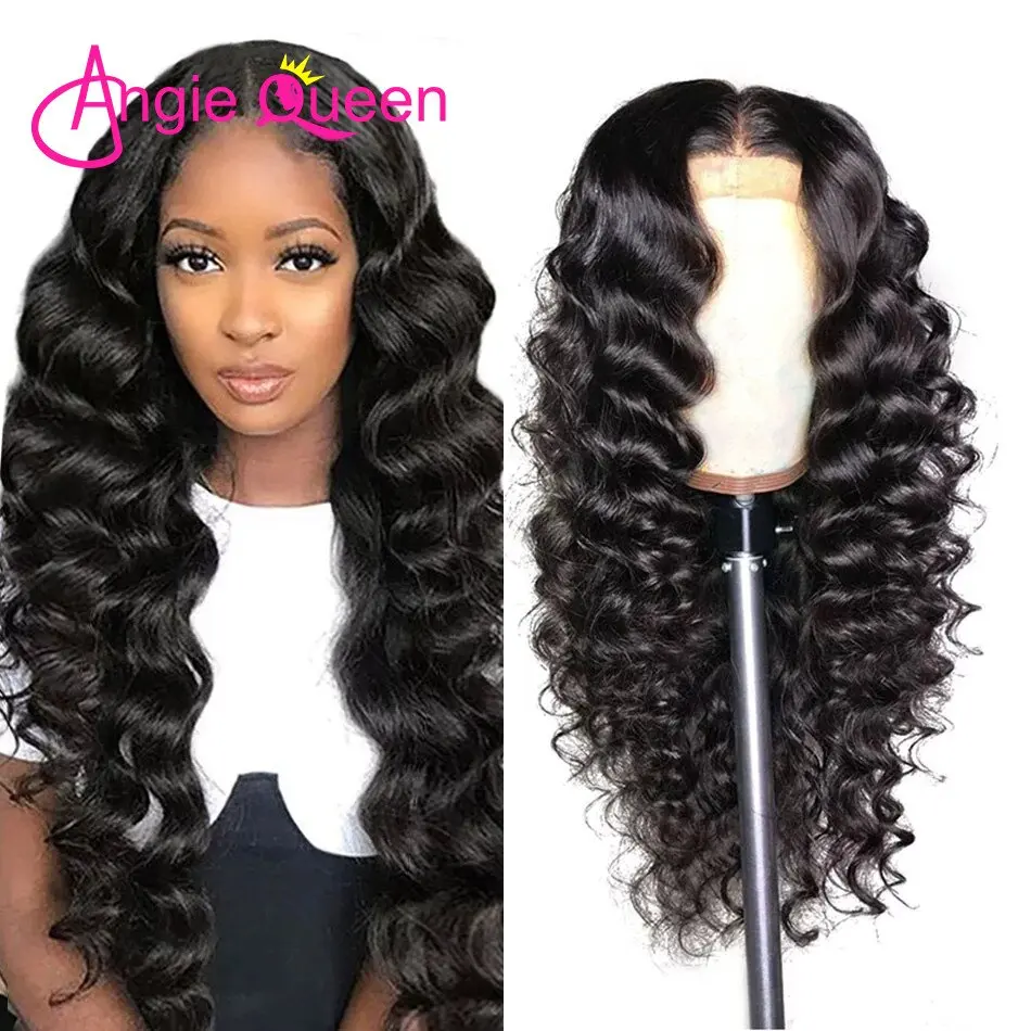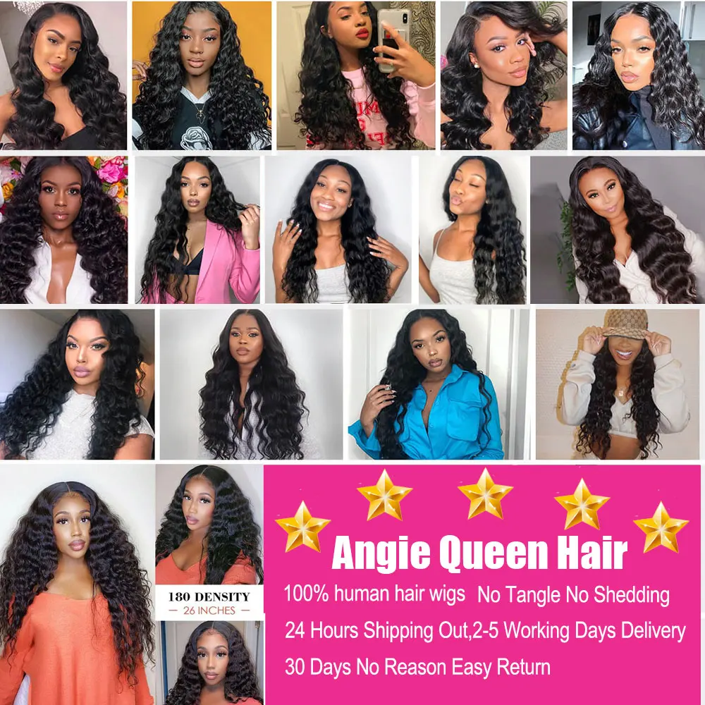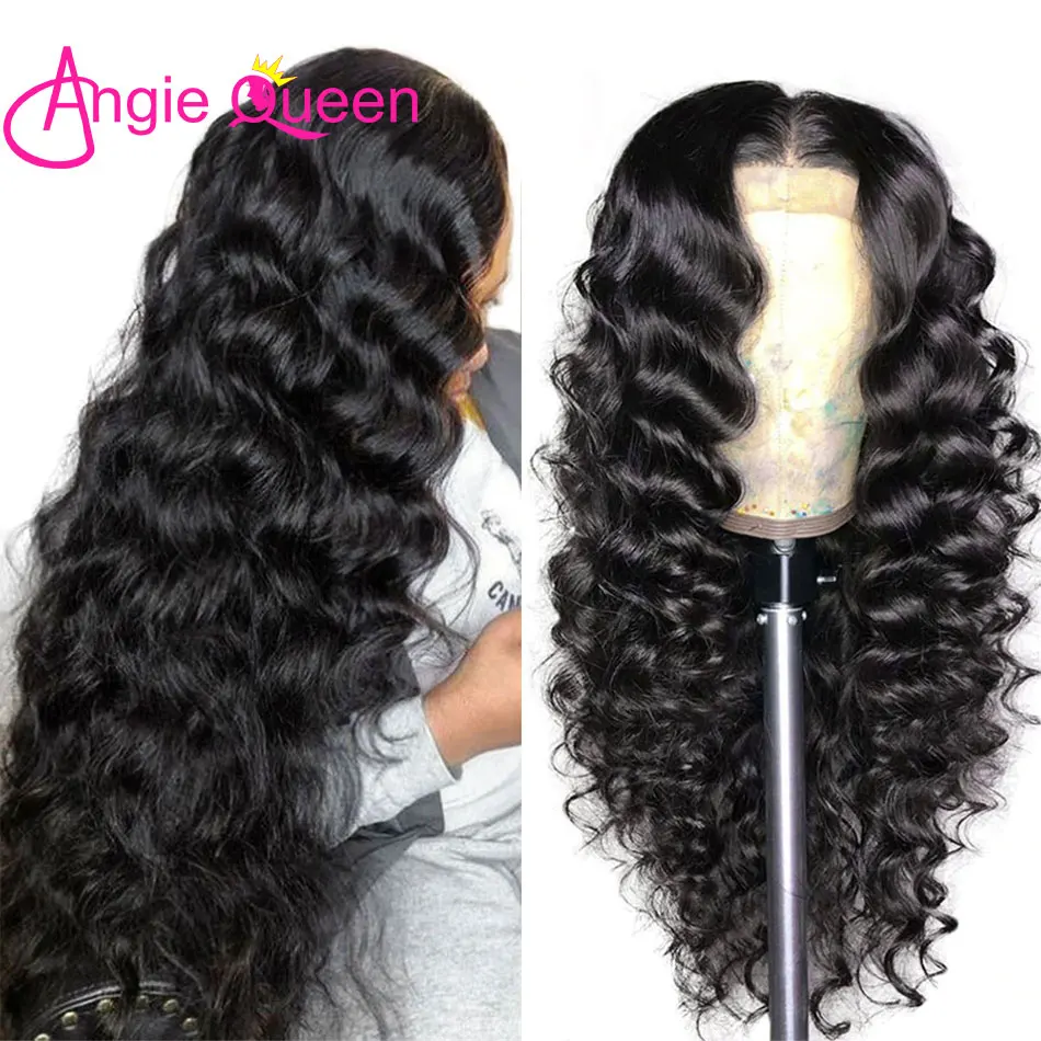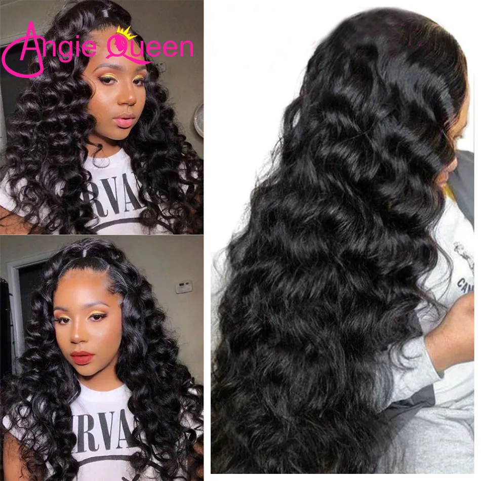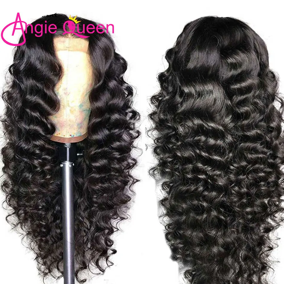 Бразильский Свободный парик с глубокой волной 13X4 T, парики из человеческих волос на сетке спереди для женщин, ANGIE QUEEN, предварительно выщипанный, Remy, HD, парик на сетке спереди