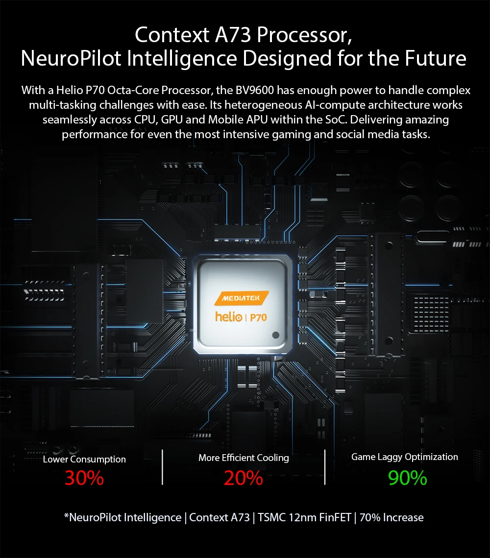 Особенности 1. Helio P70 (MTK6771T) 8-ядерный 12nm 4x Cortex-A73 2,1 ГГц + 4x Cortex-A53 2,0 ghzz Процессор, высокая производительность, в сочетании с 6 ГБ + 128 ГБ, работать быстрее и работать более плавно. 2. 6,21 дюймов FHD + IPS 2248*1080 AMOLED экран, полный угол, большой вид, яркий цвет. 3. Фронтальная камера 8.0MP IMX134 FF 1/4 дюйма, прозрачная для видеочата и селфи 4. Задние камеры: 16.0MP S5K3P8SX15-FGX9 + 0.3MP GC0310 глубина полевой камеры со вспышкой светильник, хорошо подходит для съемки четких фотографий. 5. Питание от 4,4 v 5580 мА • ч, высокоемкая литий-ионный полимерный аккумулятор, с зарядкой 9 В 2A, поддерживает беспроводную зарядку. Сеть 1. 2G Частота сети: -GSM B2/B3/B5/B8 2. 3G Частота сети: -WCDMA B1/B2/B4/B5/B8 -TD-SCDMA B34/B39 3. 4G Частота сети: -TDD-LTE B34/B38/B39/B40/B41 -FDD-LTE B1/B2/B3/B4/B5/B7/B8/B12/B17/B18/B19/B20/B25/B26/B28A/B28B/B66