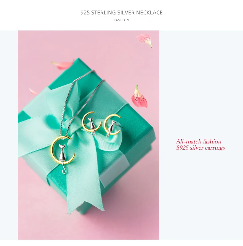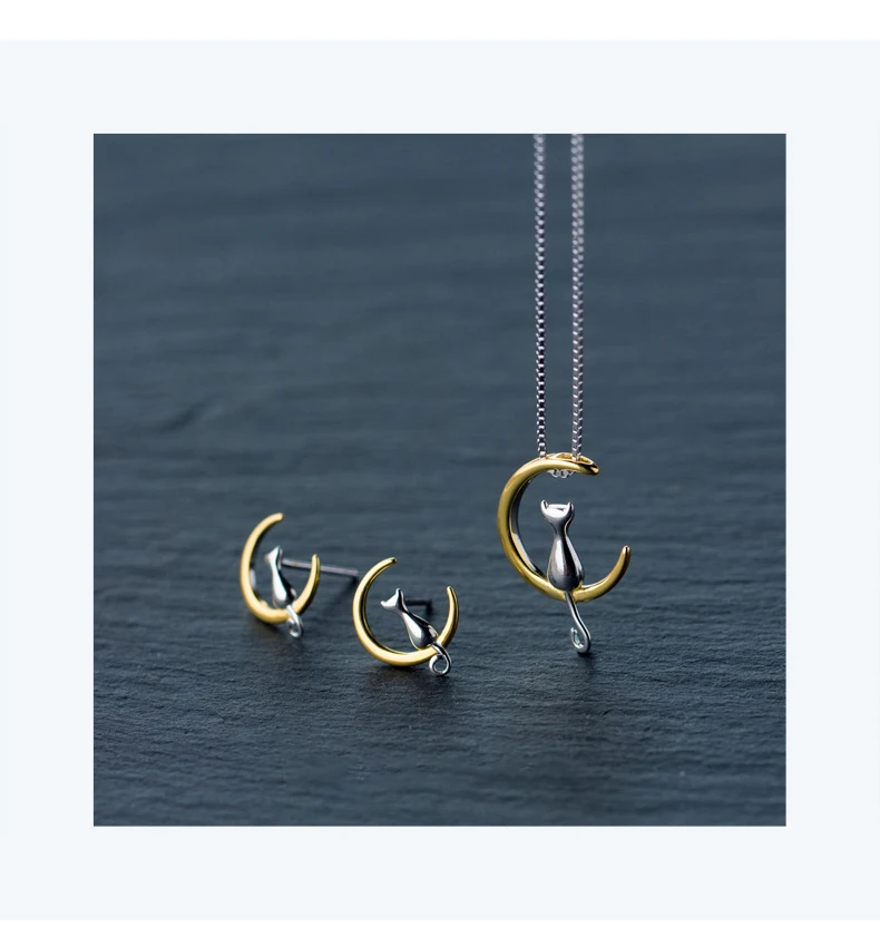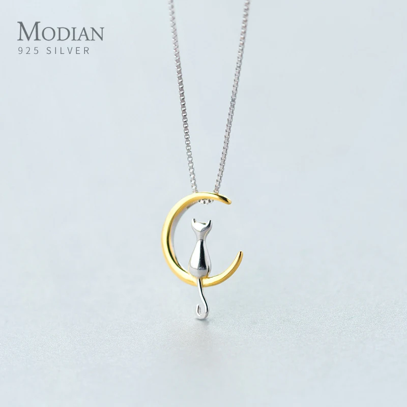 Modian Настоящее серебро 925 проба животное золотого цвета наборы с котами очаровательные гвоздики серьги для женщин модное ожерелье кулон вечерние ювелирные изделия