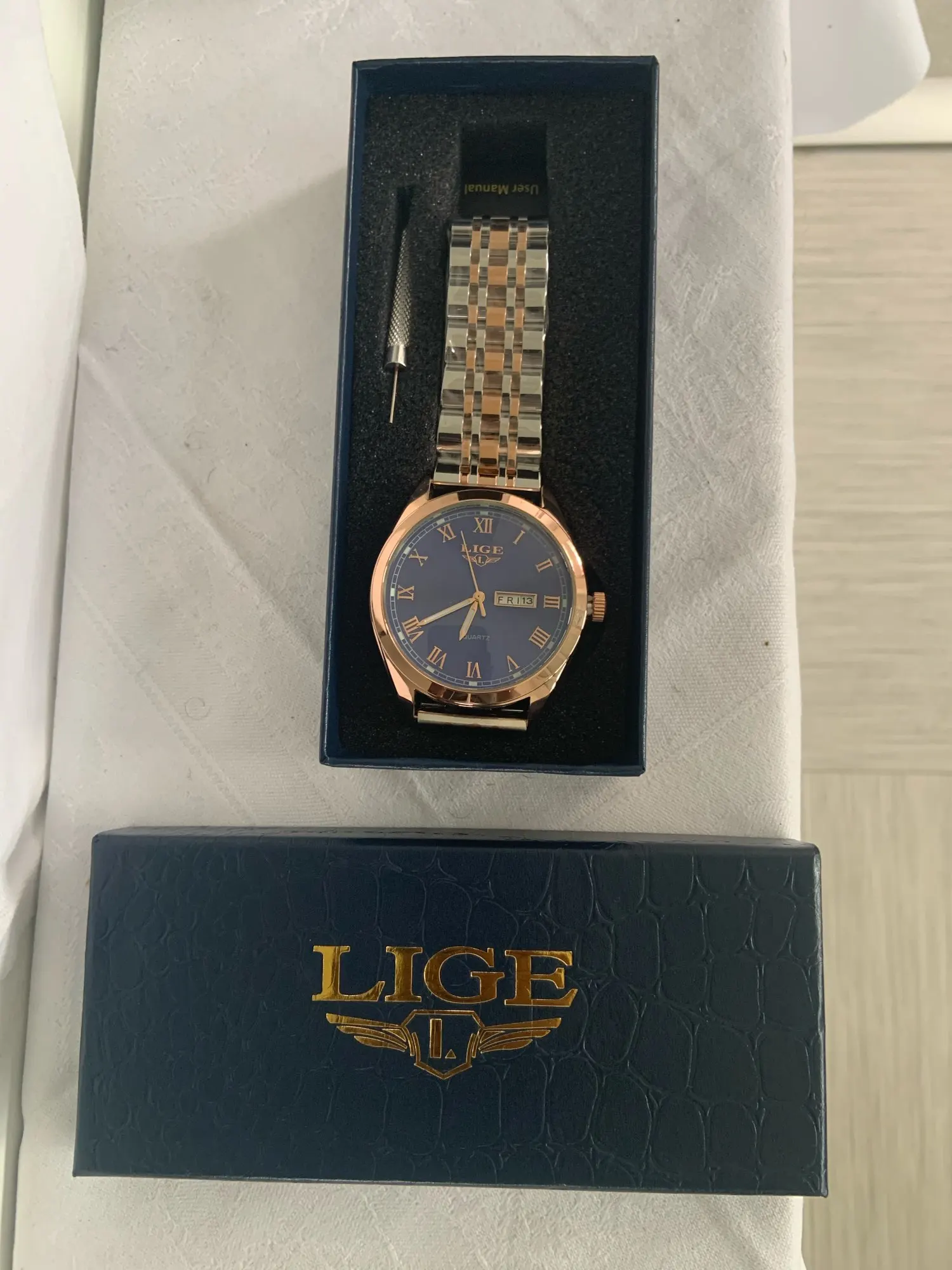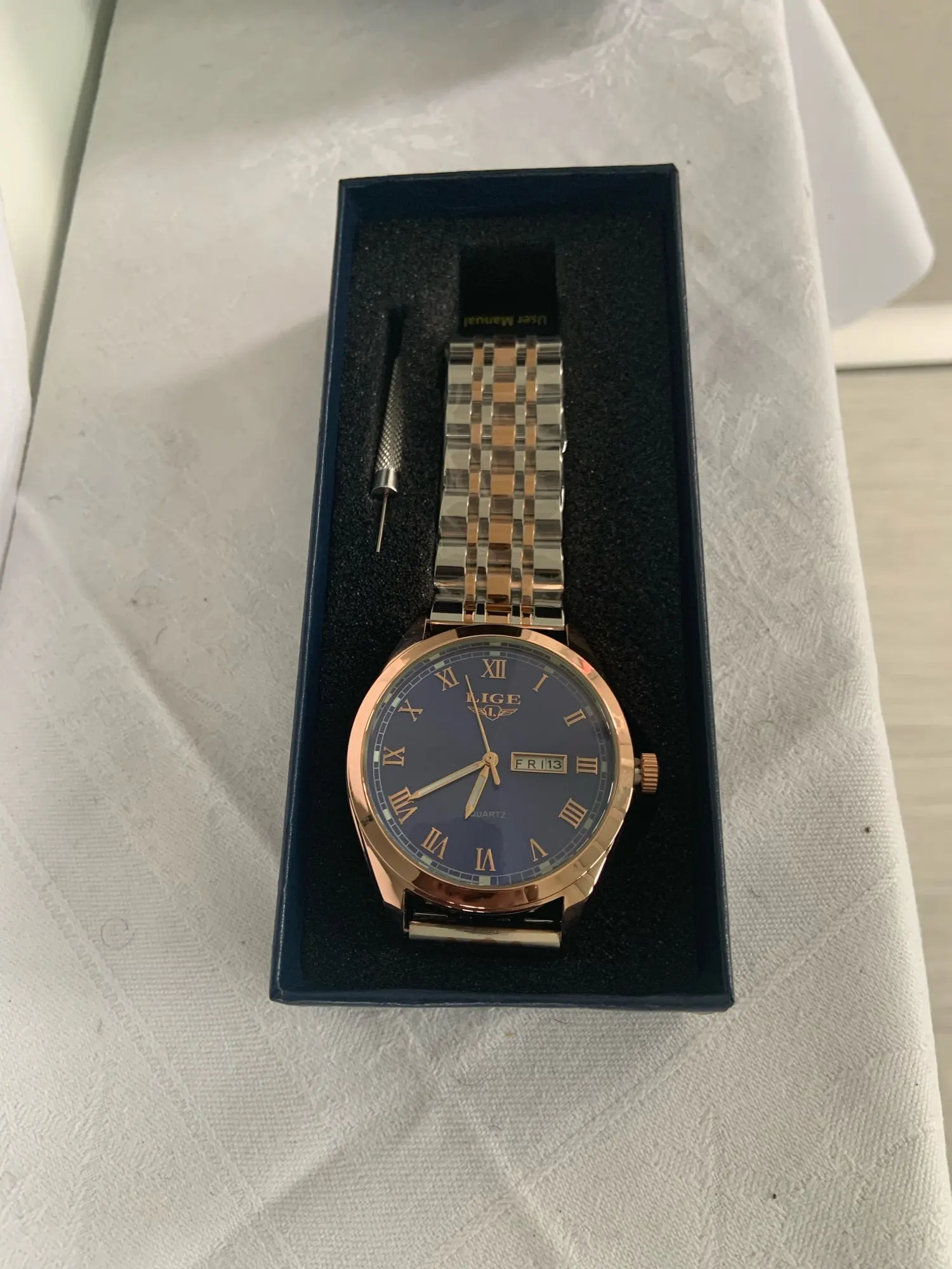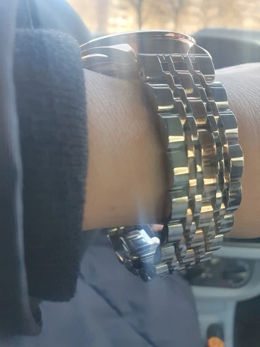 Часы выглядят дорого, в комплекте есть отвертка для самостоятельного уменьшения звеньев. Продавец быстро отправил заказ, товар соответствует описанию