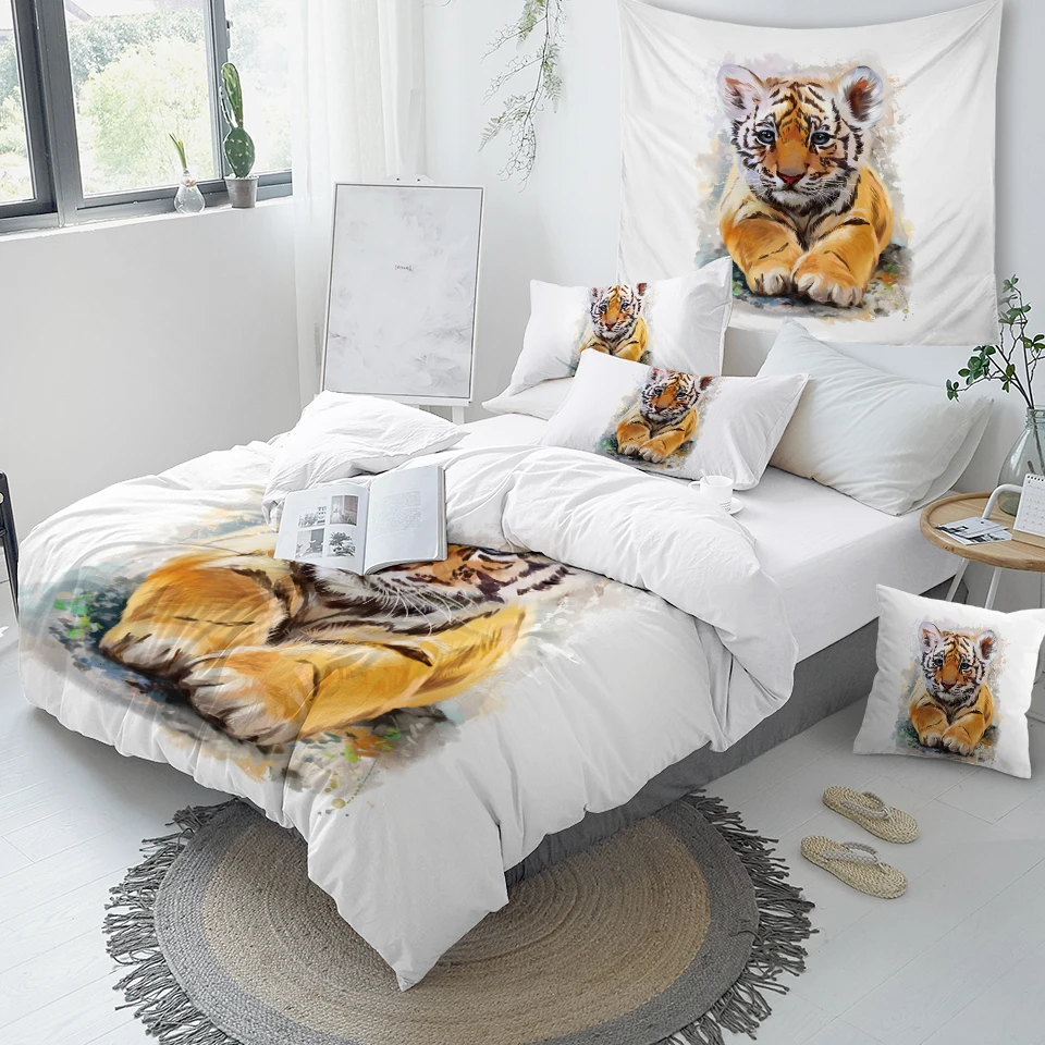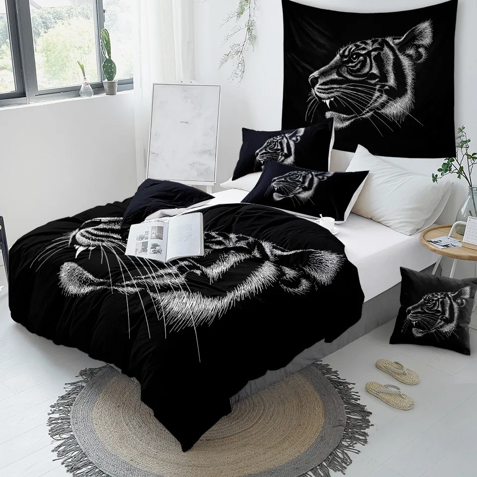 BeddingOutlet тигровый Детский Комплект постельного белья, Королевский акварельный пододеяльник, натуральное животное, домашний текстиль, Черное и белое постельное белье, роскошный комплект постельного белья