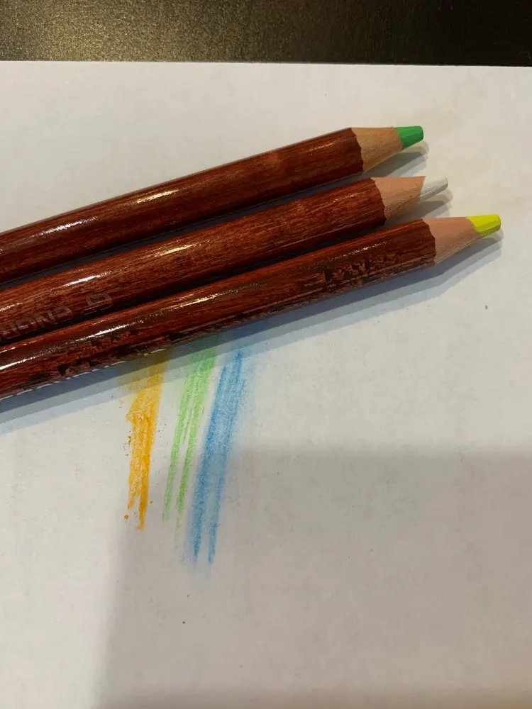 Очень специфические карандаши, по мягкости все разные, мягких нет, только средние или твердые; некоторые даже очень твердые. Цвета не совпадают с указанными на конце карандаша, ориентируйтесь по грифелю и выкраске. Нормального красного нет, вместо холодного серого - землистый. Несомненный плюс - очень быстрая доставка до постамата