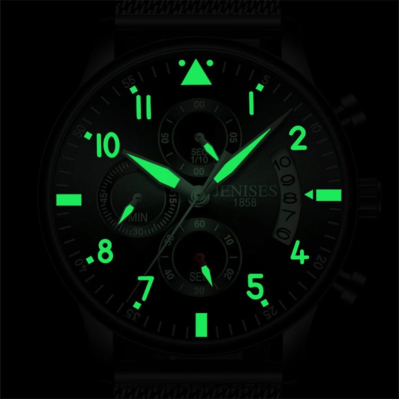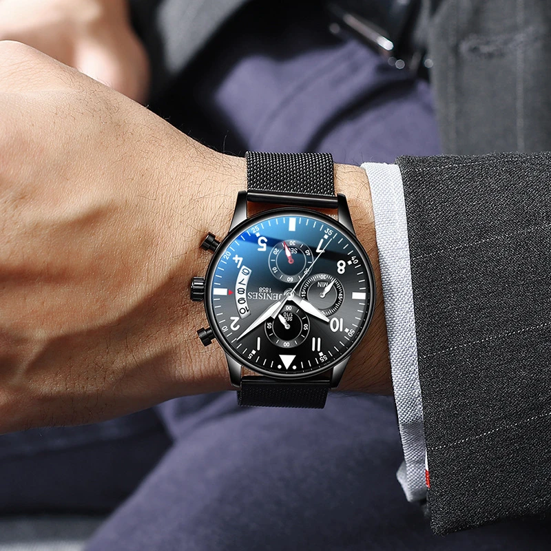 Часы наручные FD2711 Мужские кварцевые, брендовые Роскошные модные водонепроницаемые аналоговые с хронографом, с сетчатым ремешком, стальной
