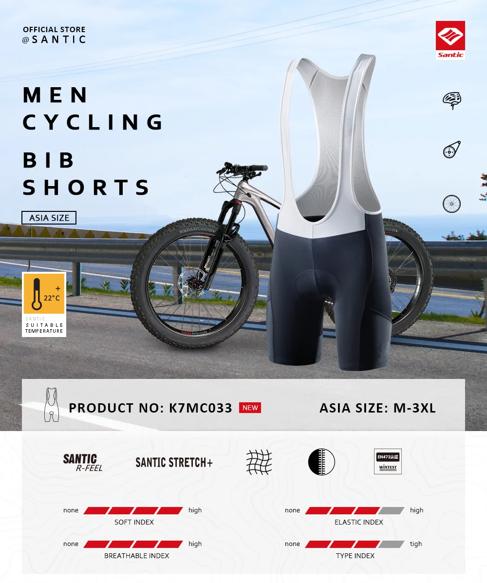 Santic мужские шорты на лямках, летние велосипедные шорты с 3D подкладкой, велосипедные шорты MTB, летние дорожные велосипедные шорты для езды на среднем расстоянии