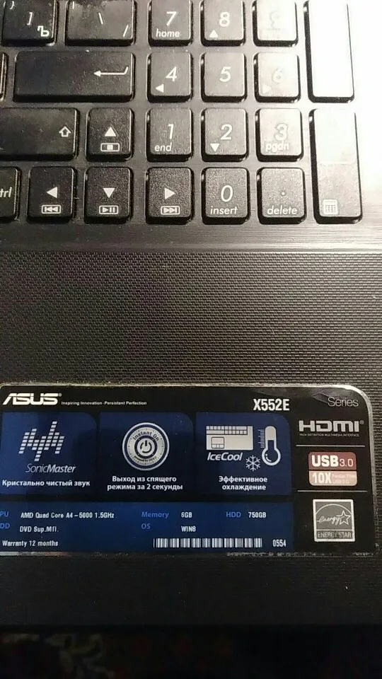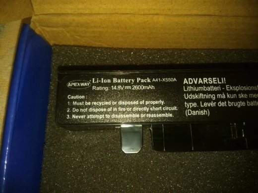 Подошел как влитой на X550L. Доставка в течение 8 дней. Был заряжен на 57%.