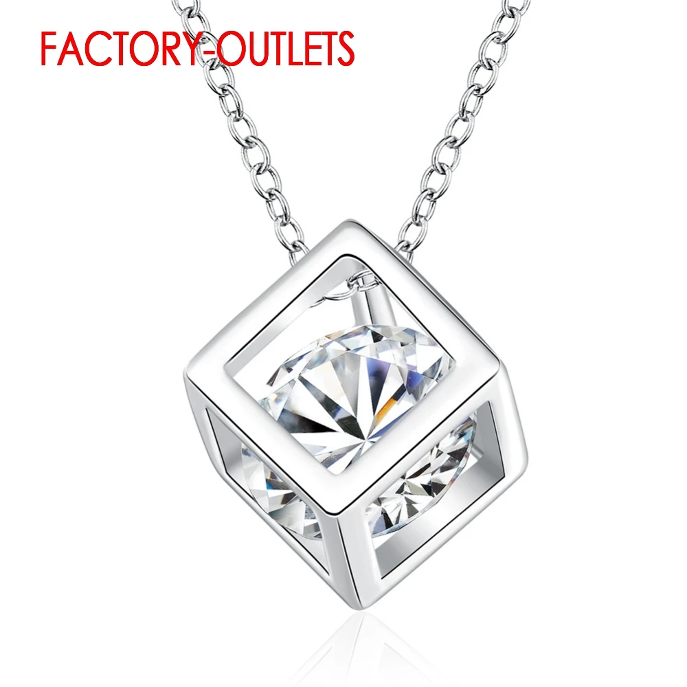 Женское Ожерелье с кулоном из серебра 925 пробы с квадратным криста...