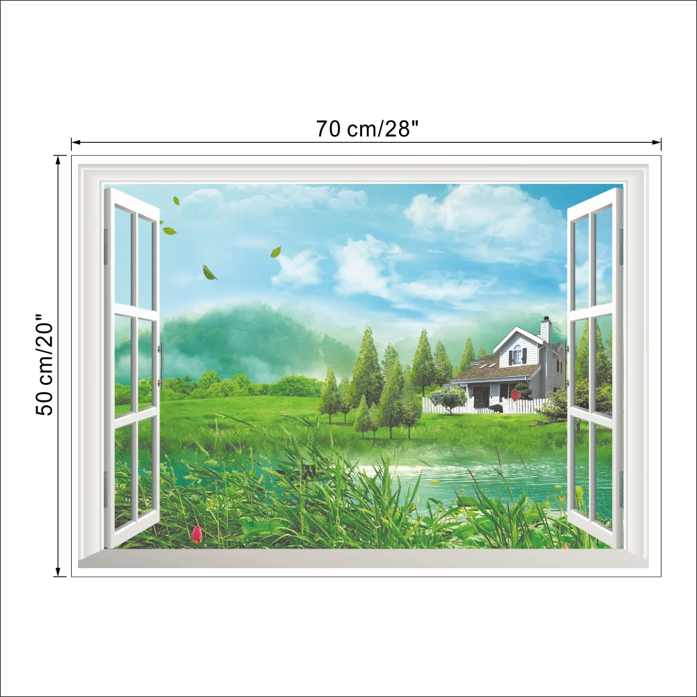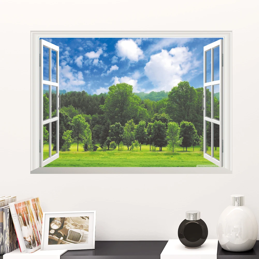 3D разбитое окно стены лесного пейзажа в Four Seasons стикер на стены с пейзажем зеленое дерево съемные обои для дома наклейка домашний декор