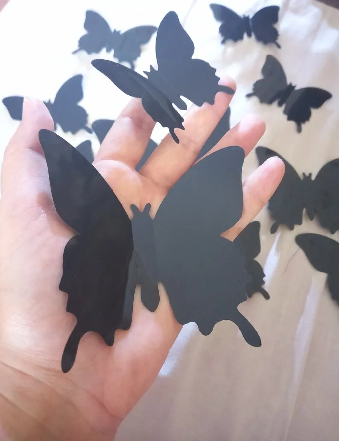 La entrega fue antes de lo previsto. Las mariposas son tal y como se ve en las imágenes del vendedor. Las he pegado en pared con pintura gotelé y han quedado genial. Recomiendo el producto.