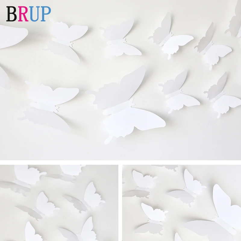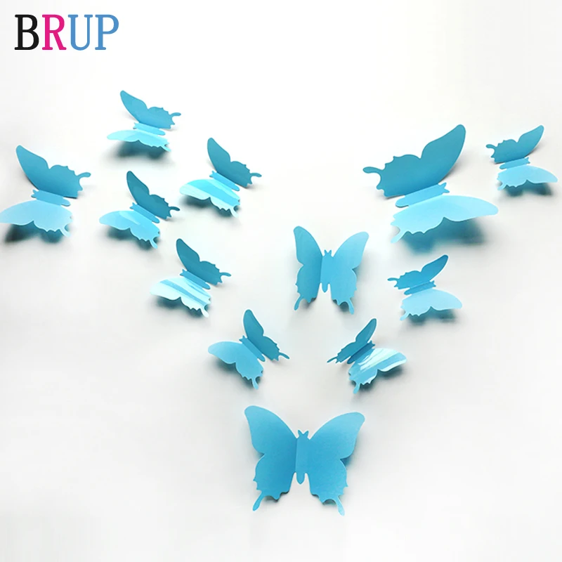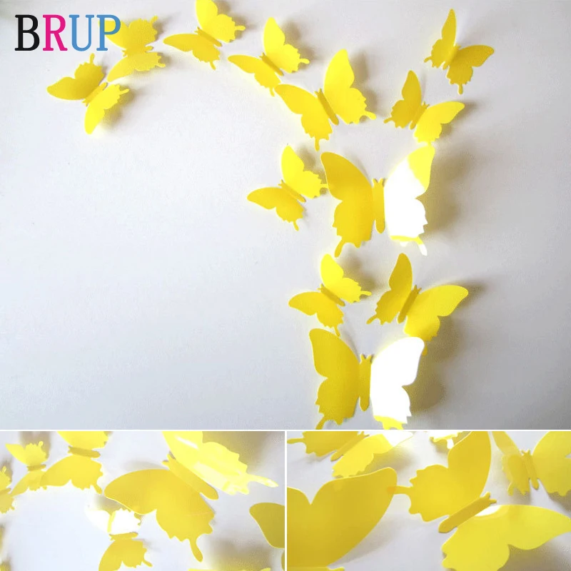 12 шт.лот 3D однотонные наклейки на стену с бабочками, свадебные синие желтые красивые бабочки для детской комнаты, наклейки на стену, украшения