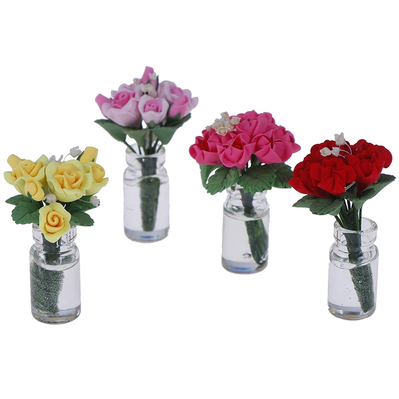 Масштаб 112 миниатюрные глиняные цветы в горшке для кукол садовые растения для гостиной кукольный домик декоративная игрушка