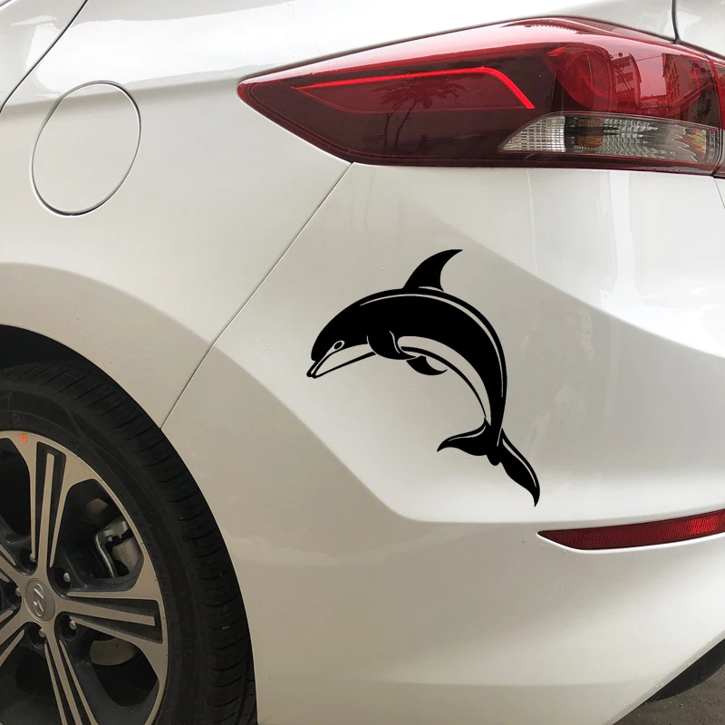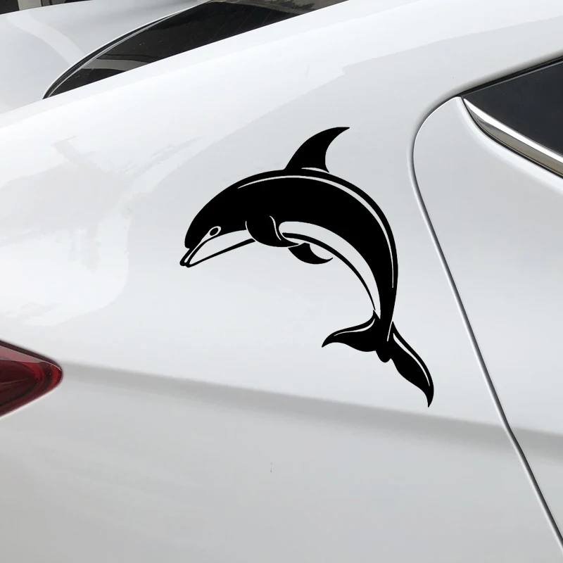 YJZT 14,5 см * 16,1 см Дельфин Мультфильм, Декор, двери автомобиля виниловые наклейки на машину, наклейка черныйсеребристый, с рисунком из мультфильма