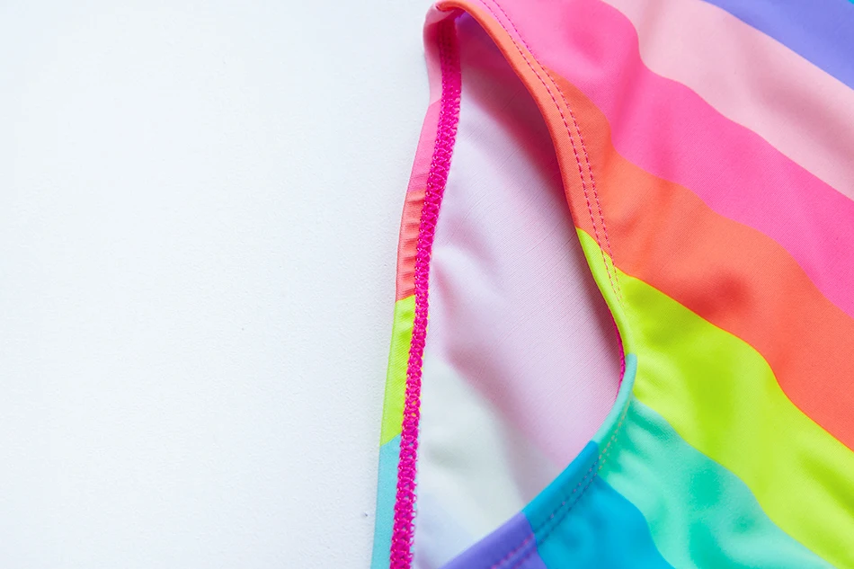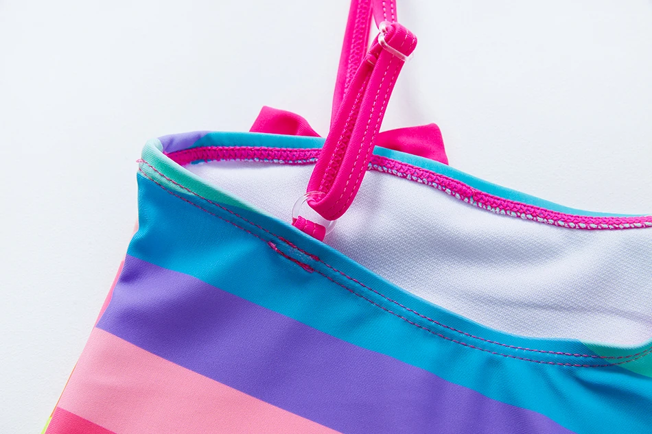 Купальник для девочек радужной расцветки, купальные костюмы с косыми плечами, женская летняя пляжная одежда, детские купальники, 2021