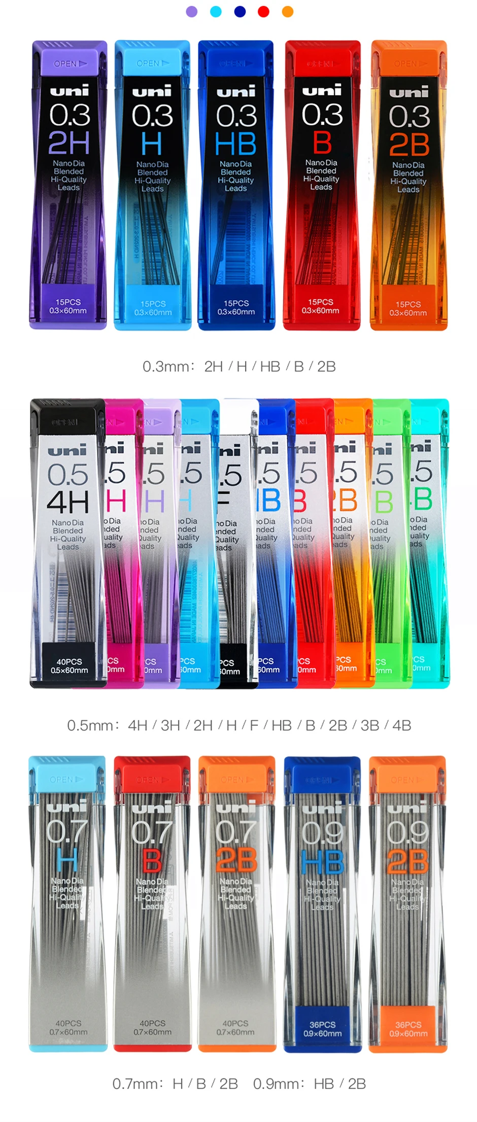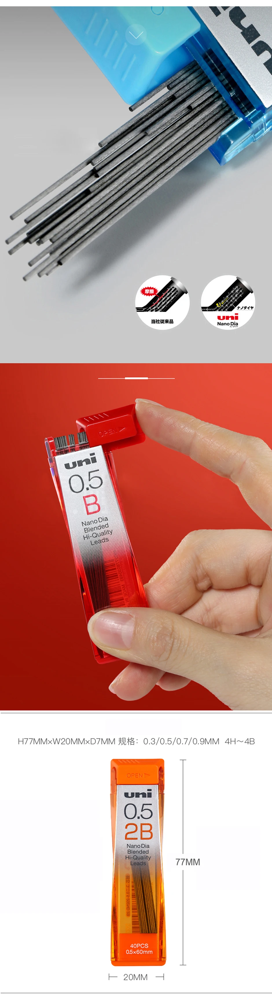 UNI Карандаш свинец 0,3 мм0,5 мм0,7 мм0,9 мм 202ND Nano твердый карандаш сердечник не легко сломать и гладкое письмо