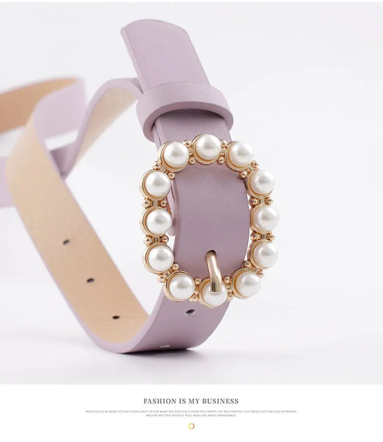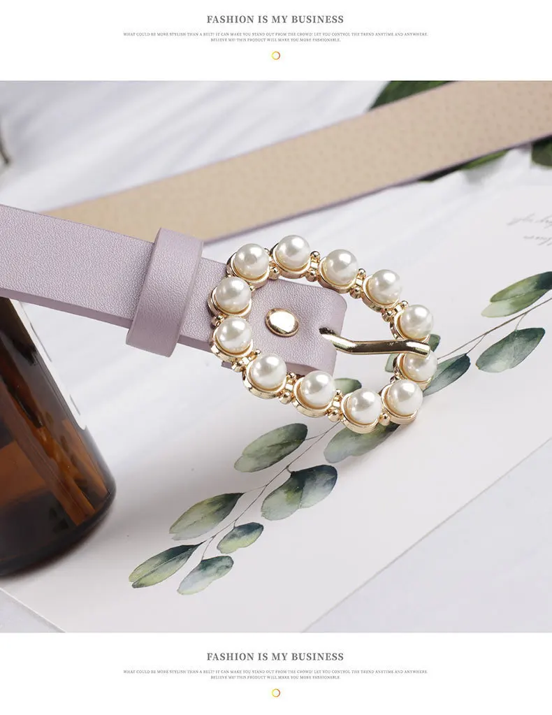 Модные свадебные туфли Украшенные жемчугом; Декоративным поясом дамские повседневные круглой пряжкой пояс с жемчугом; Женские повседневные однотонные туфли-лодочки из искусственной кожи на тонком ремень