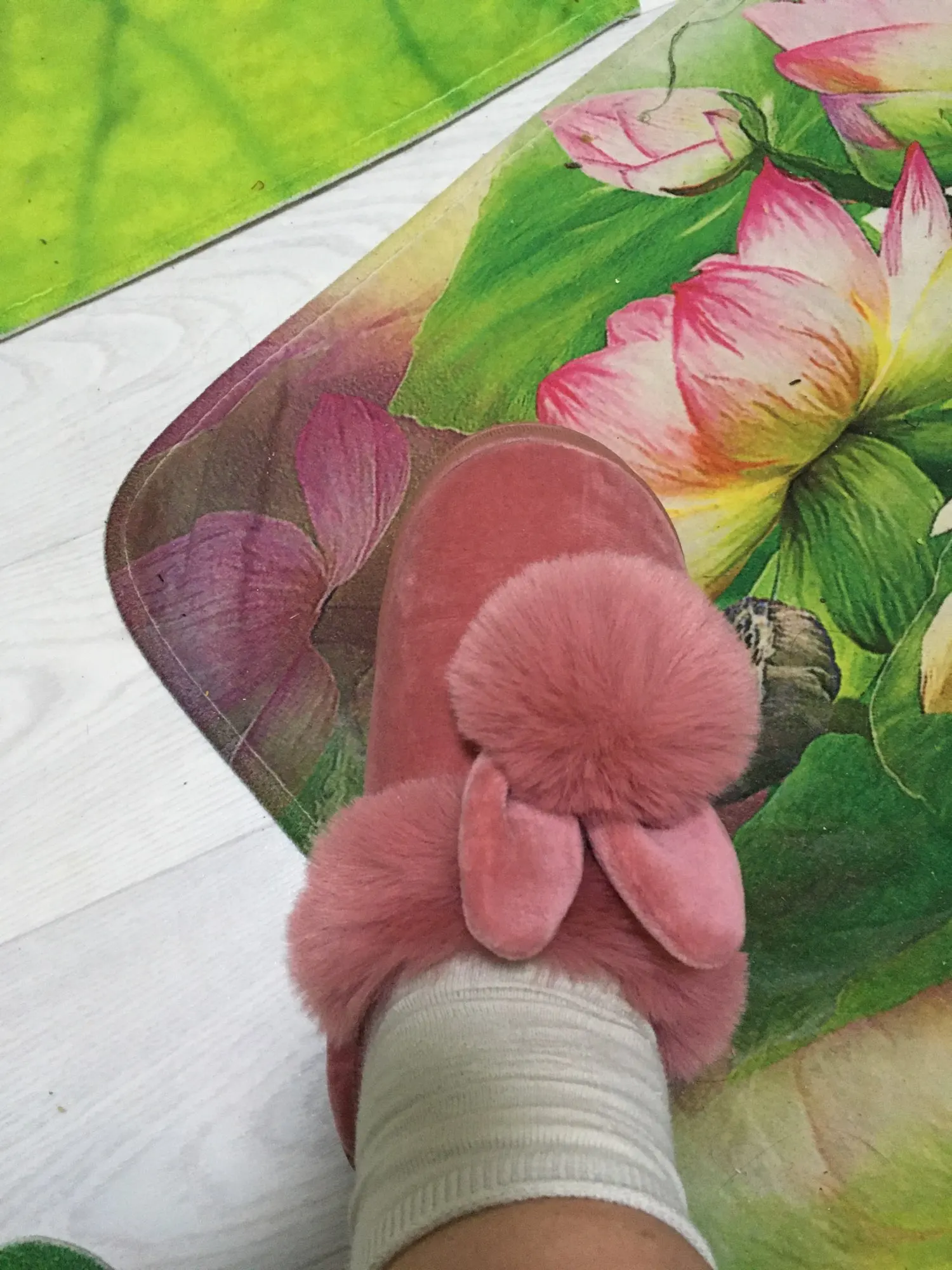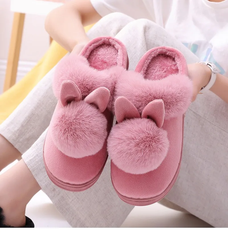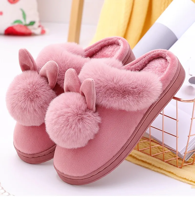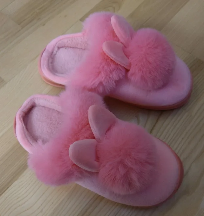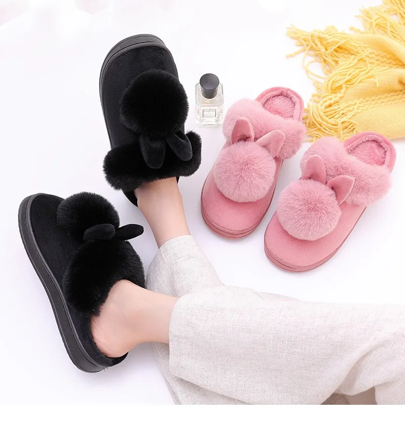 Tапочки для дома Cлайдеры обувь женская пух норки Мультяшные женские домашние тапочки с кроличьими ушками, слипоны, мягкая подошва, зимняя теплая Бесшумная обувь для дома и улицы, меховые сланцы для женщин и девочек