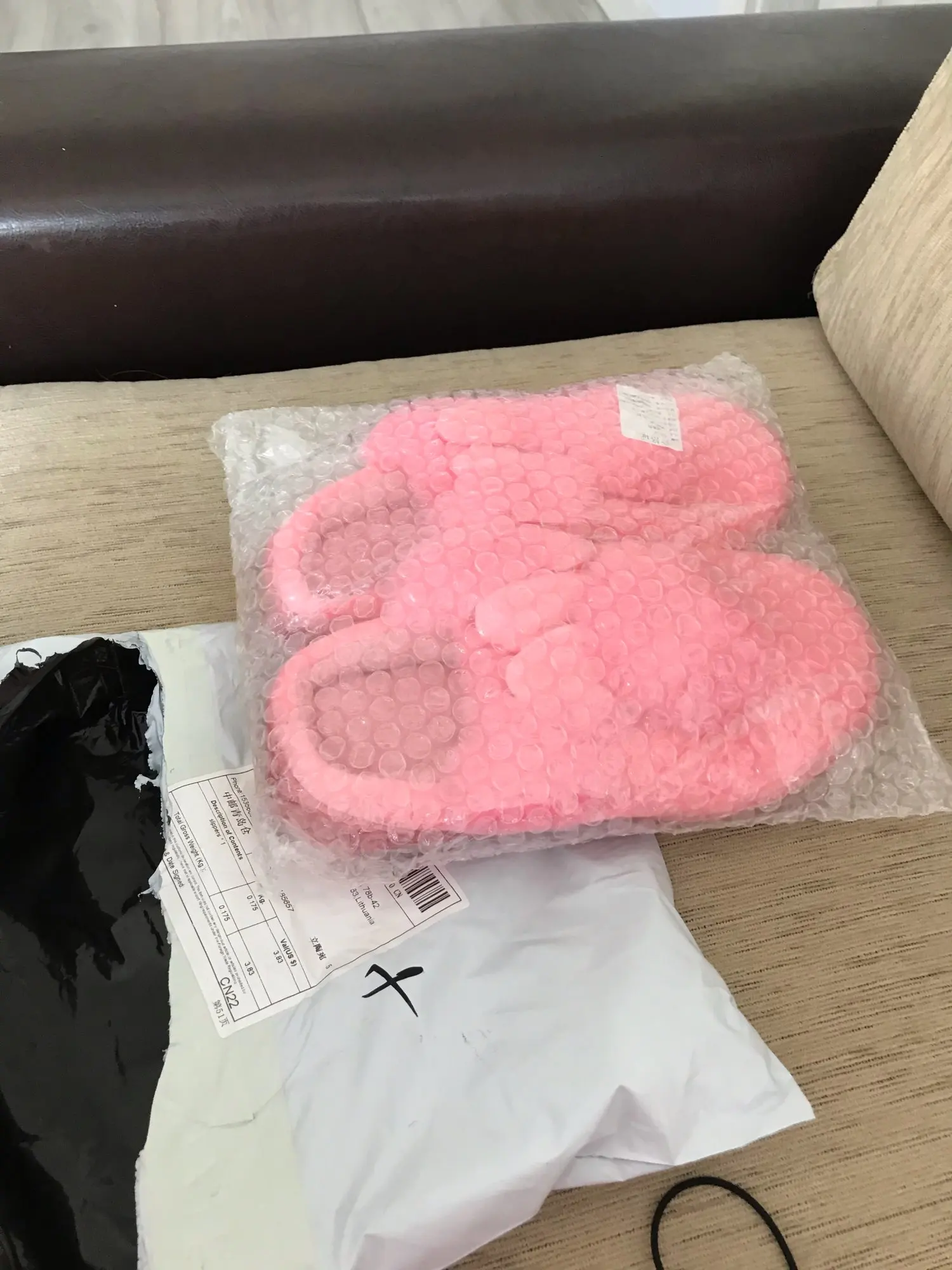 Тапочки очень красивые, но упакованы в пакет, поэтому пришли очень мятые