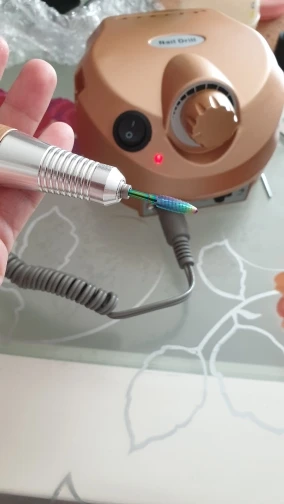 всё работает хорошо,ручка не вибрирует и не шумит, также педаль ножная очень удобно.Берите девочки не пожалеете, особенно для домашнего использования. На фото обработала кутикулу. Доставка из России быстрая.