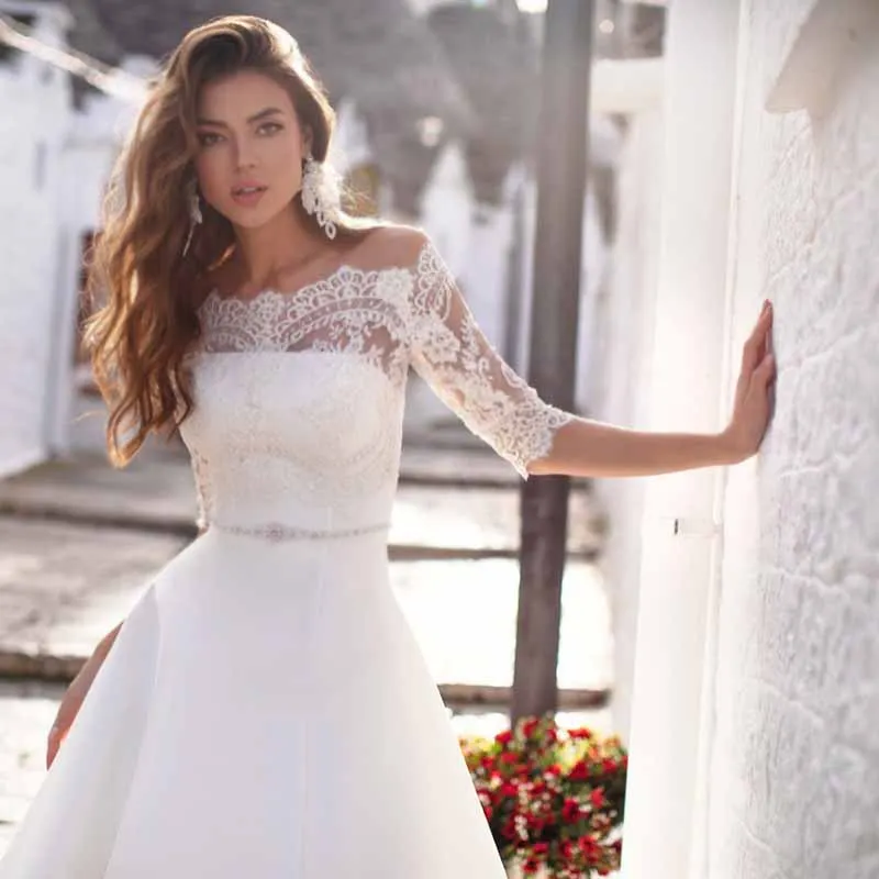С открытыми плечами с коротким рукавом свадебное платье сексуальные аппликации Кружевной Белыйслоновой кости кнопка назад платья для матери невесты 2021 Vestido De Noiva