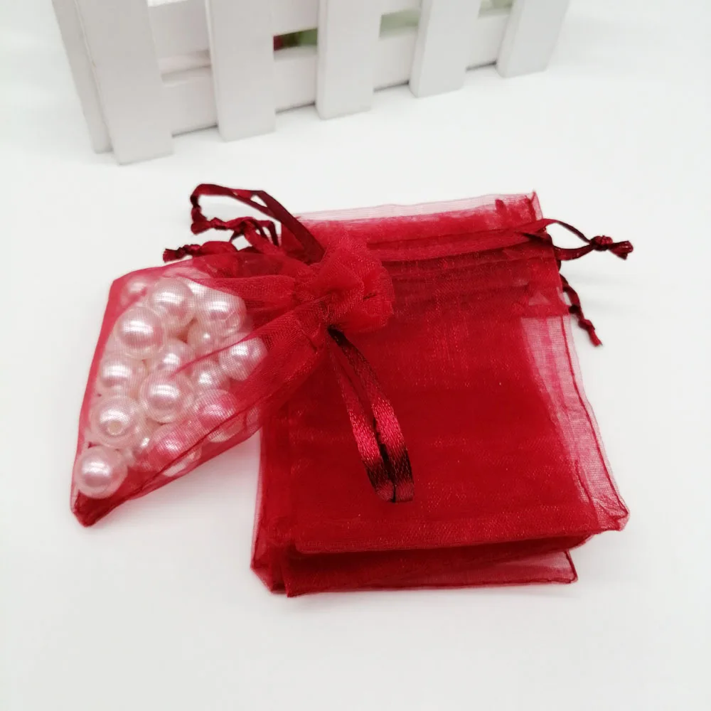 100 шт. сумки из органзы винно-красные маленькие подарочные сумки из органзы для упаковки ювелирных изделий дисплей Рождественская Свадебная сумка для хранения ювелирных изделий на шнурке