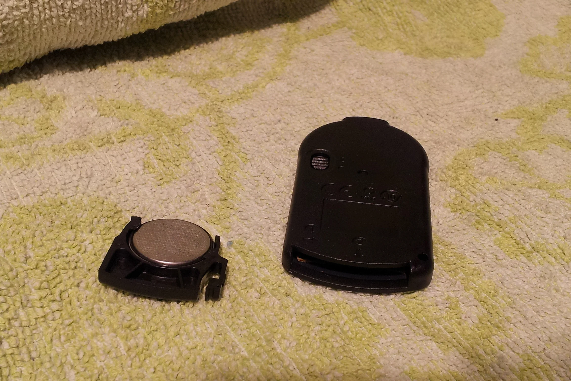 Пришёл без батарейки. Работает только спереди. Сзади сигнал не проходит.