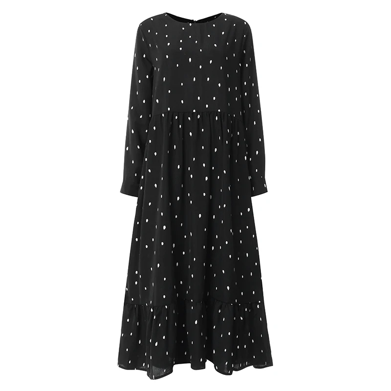 Женское длинное платье в горошек, с оборками по подолу, для пляжа, осень 2021