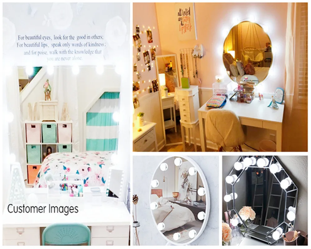 Вам не нужны инженерные знания, прежде чем вы сможете исправить этот набор. Наши светодиодные светильники для косметического зеркала очень просты, просты и удобны в установке. Эти лампочки хорошо спроектированы с помощью сверхпрочного клея, чтобы правильно сохранить их Приклеивание к зеркалу для макияжа. Вы можете макияж быстрее с этими яркими лампами!