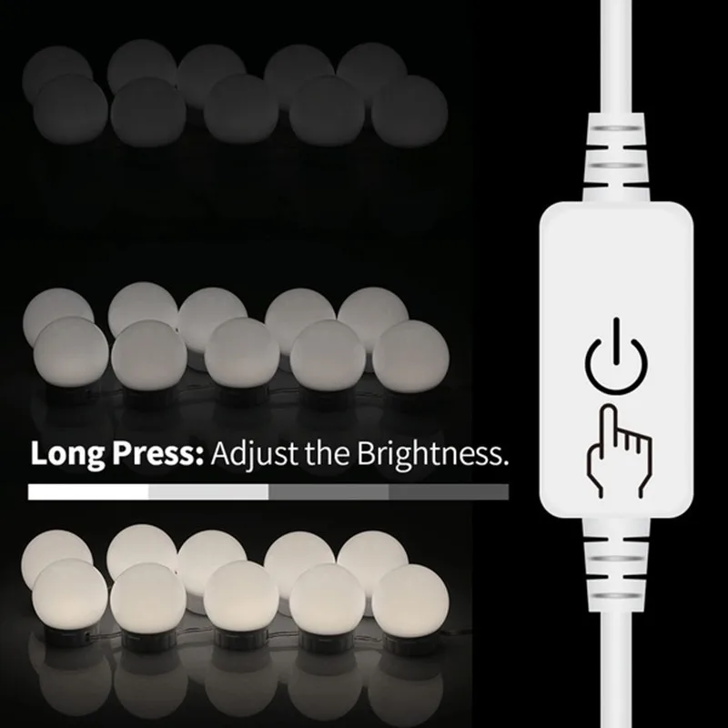Наша Косметическая лампа в голливудском стиле превосходно оснащена умным сенсорным диммером, который позволяет свободно настраивать и регулировать яркость вашего светодиодного зеркального светильник щения. Функция памяти, красиво расположенная в конце этой лампочки, дает вам общую мощность для управления яркостью до желаемого уровня.
