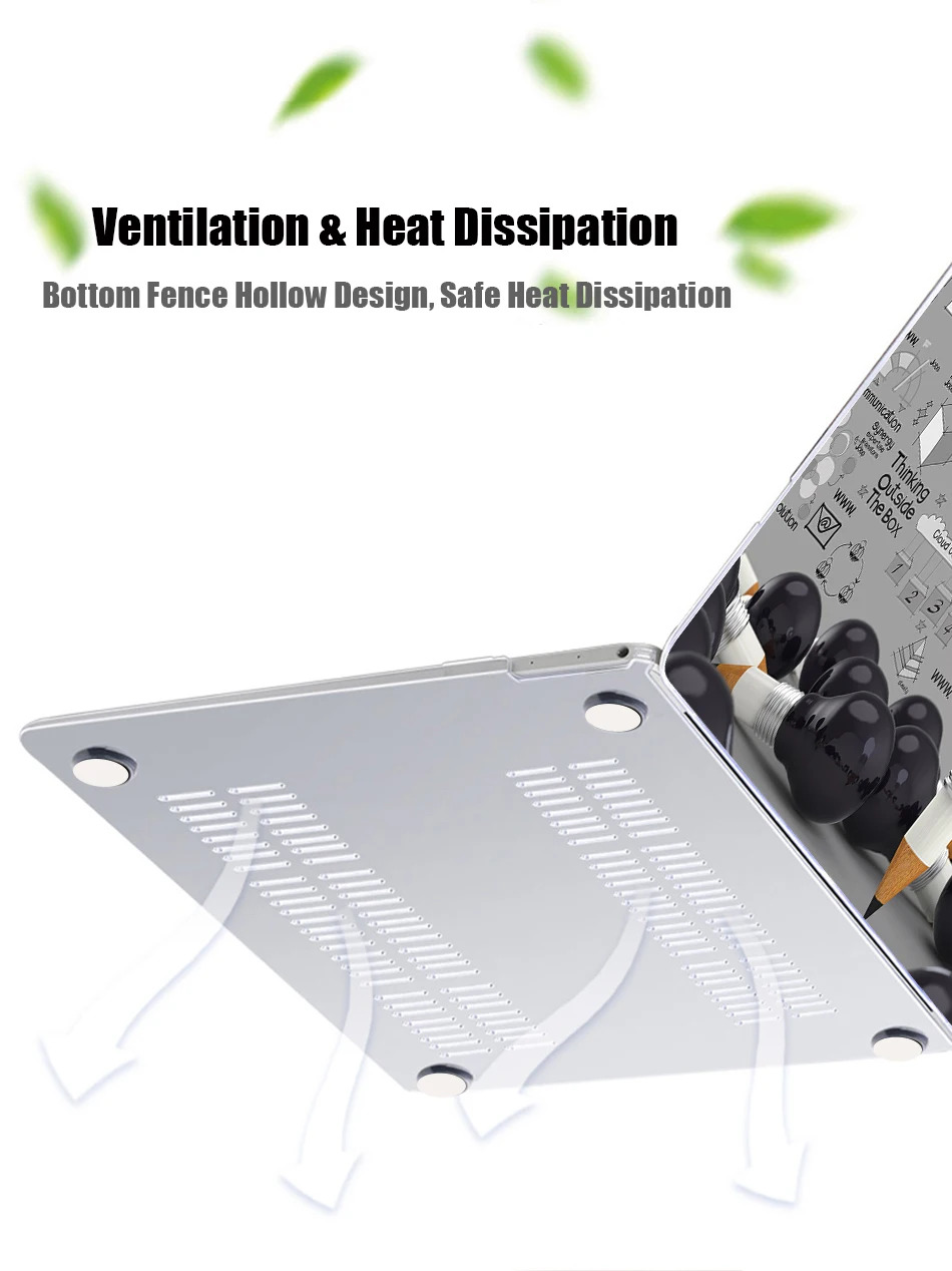 Описание товара:• Чехол предназначен только для Macbook Pro и Air Series.• Материал: экологически чистый пластик премиум-класса, защищает ваш Macbook от кофе, пятен, ежедневного износа.• Чехол без выреза, логотип просвечивает сквозь чехол.• Продвинутая техника печати (не наклейка), используйте импортные чернила ECO-UV, хорошо восстанавливают цвет изображения, рисунок не отваливается и не выцветает.• На заказ, полный доступ ко всем портам и функциям, полная защита вашего ноутбука от царапин и царапин.• Нижняя крышка с 4 противоскользящими силиконовыми ножками для эффективного и безопасного отвода тепла.• Цвет может незначительно отличаться из-за цветовой калибровки каждой индивидуальной настройки монитора, пожалуйста, смотрите реальный товар, который вы получили.